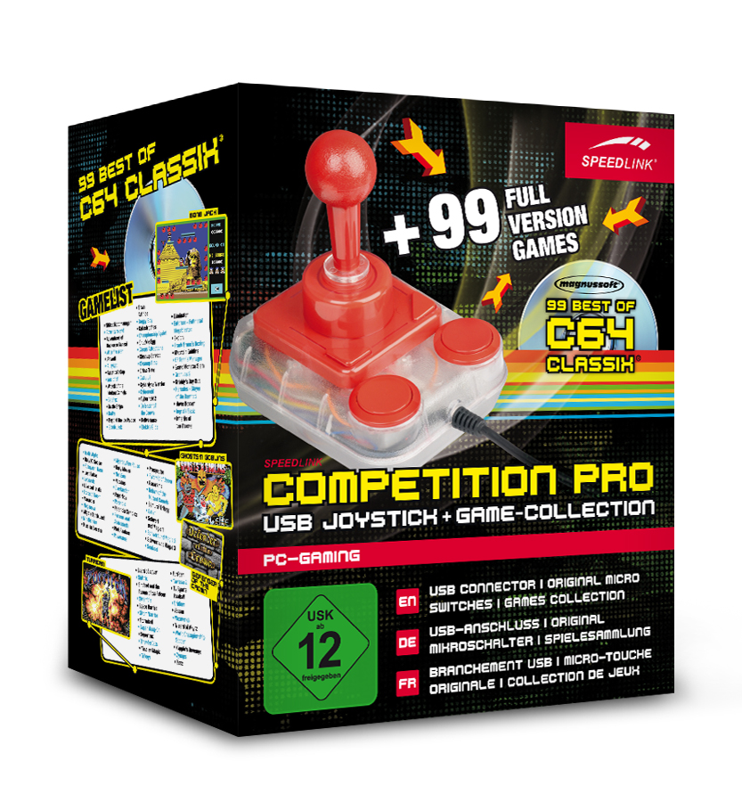 Bekannt aus den 80ern ist der „Competition Pro“ der absolute Joystick-Klassiker für viele Fans von C-64™, Amiga™ & Co und die erste Liebe ihres Lebens. Er war millionenfach in Haushalten auf der gesamten Welt zu finden und begeistert seine Besitzer bis heute. Die 99 Spieleklassiker der „99 best of C64 Classix®“ für den PC machen das Paket zu einem echten Retro-Feuerwerk.