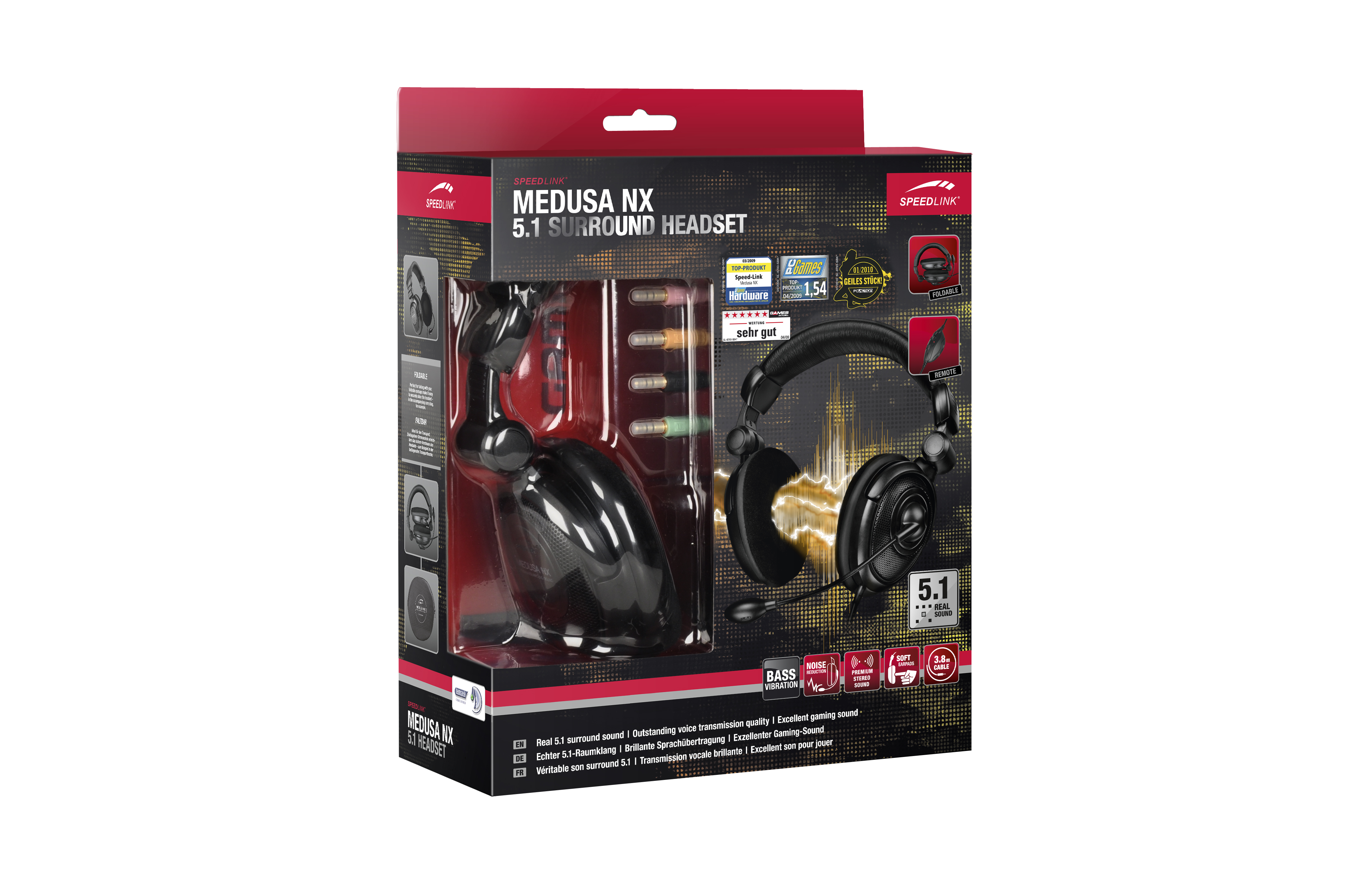 Genießen Sie brillante Höhen, spüren Sie intensive Bässe – und hören Sie genau, woher sie kommen: Das MEDUSA NX 5.1 Gaming Headset liefert nicht nur feinsten Klang, es erlaubt dank der insgesamt acht integrierten Lautsprecher und Subwoofer auch eine räumliche Ortung der Geräuschquelle, ein entscheidender Vorteil in 3D-Spielen und ein imposantes Surround-Klangerlebnis. Mit geringem Gewicht und komfortabler Polsterung ist das MEDUSA NX 5.1 angenehm zu tragen und damit erste Wahl für lange Gaming-Sessions – oder auch für den Multimedia-Genuss mit Filmen und Musik.