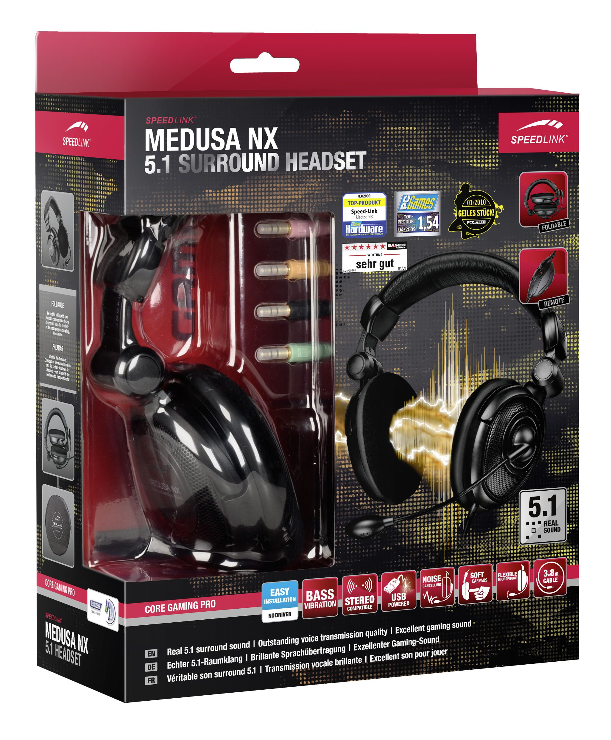 Genießen Sie brillante Höhen, spüren Sie intensive Bässe – und hören Sie genau, woher sie kommen: Das Medusa NX 5.1 Gaming Headset liefert nicht nur feinsten Klang, es erlaubt dank der insgesamt acht integrierten Lautsprecher und Subwoofer auch eine räumliche Ortung der Geräuschquelle; ein entscheidender Vorteil in 3D-Spielen und ein imposantes Surround-Klangerlebnis. Mit geringem Gewicht und komfortabler Polsterung ist das Medusa NX 5.1 angenehm zu tragen und damit erste Wahl für lange Gaming-Sessions – oder auch für den Multimedia-Genuss mit Filmen und Musik.