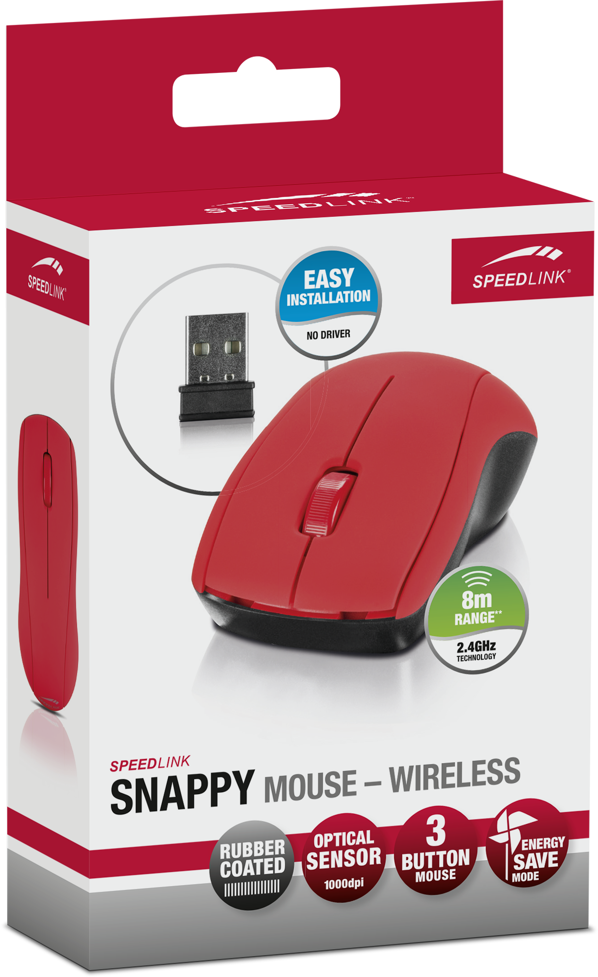 Verleihen Sie Ihrem Arbeitsplatz mehr Farbe. Die Snappy Mouse ist mit ihrer individuellen Farbe ein Blickfang auf jedem Schreibtisch. Sie lässt sich besonders ideal am Notebook nutzen und ist sowohl für Rechts- als auch für Linkshänder geeignet. Der optische Sensor garantiert eine präzise und flüssige Abtastung. Einfach an den USB-Port anschließen, der Empfänger sorgt für eine schnelle, treiberlose Installation und die einfache Verwendung aus bis zu 8 m Entfernung.