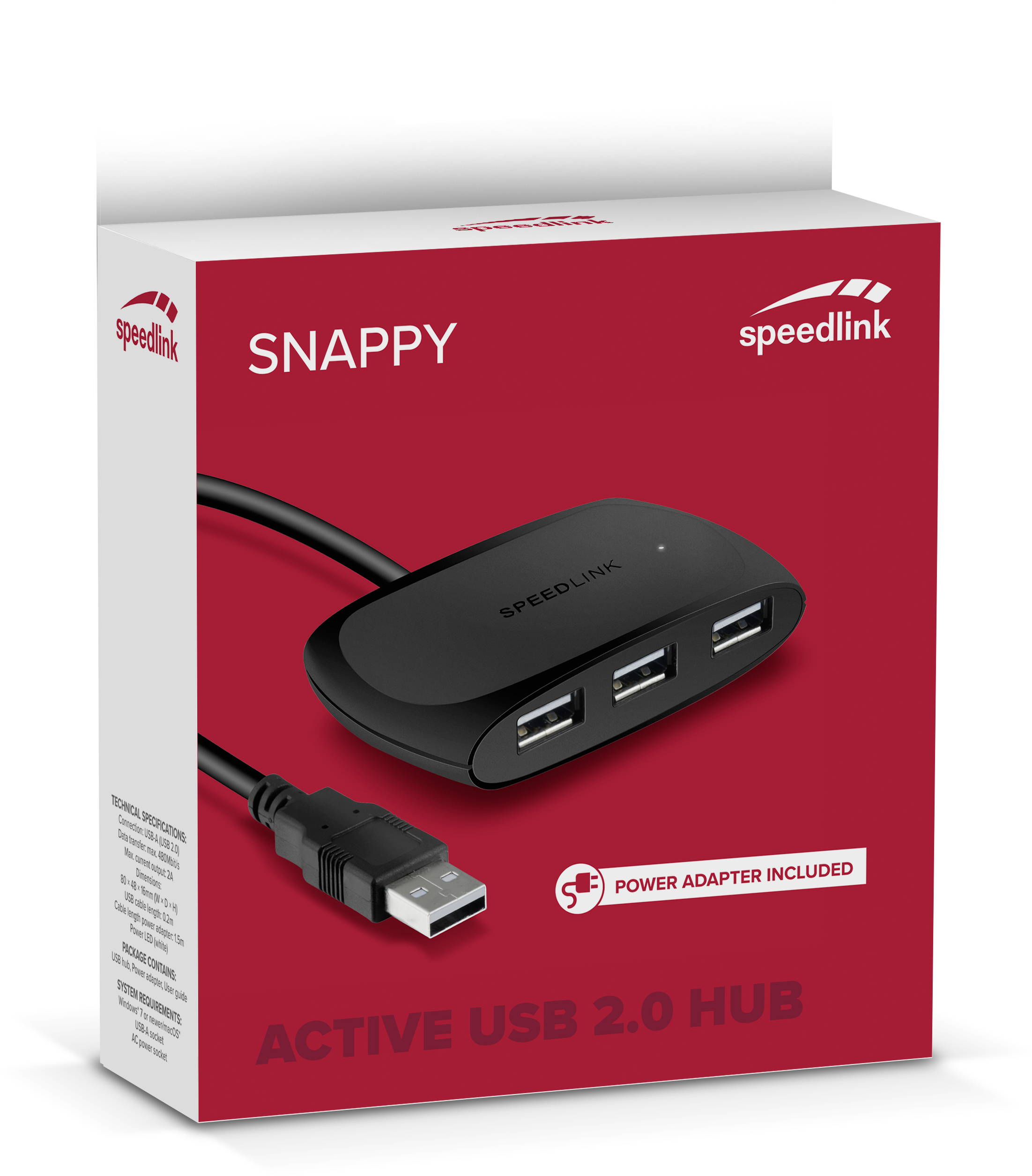 SNAPPY USB Hub, 4-Port, USB 2.0, Active, Black