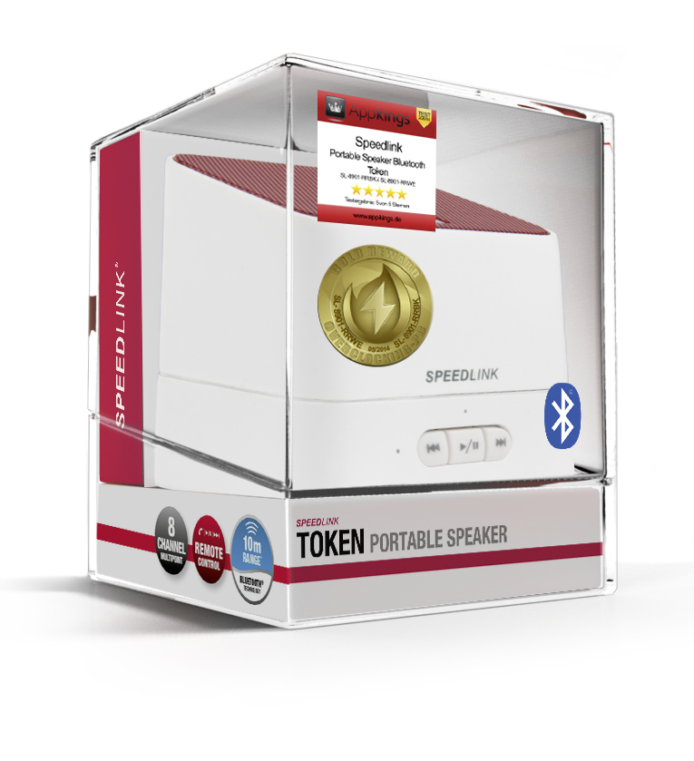 Mit dem TOKEN im kompakten Format erleben Sie vollwertigen Multimedia-Klang, egal wo Sie sich befinden. Dank des zuverlässigen integrierten Lithium-Ionen-Akkus genießen Sie jetzt auch unterwegs Ihre Lieblingsmusik sowie dynamischen Spiele- und Filmsound. Der mobile Lautsprecher lässt sich kurzerhand mit bis zu acht Bluetooth®-fähigen Geräten gleichzeitig koppeln – sei es mit dem PC, dem Handy oder Tablet. Steuern Sie Ihren Medien-Software über die komfortable Fernbedienungsfunktion und nutzen Sie die praktische Freisprecheinrichtungsfunktion, um Telefonate zu führen.