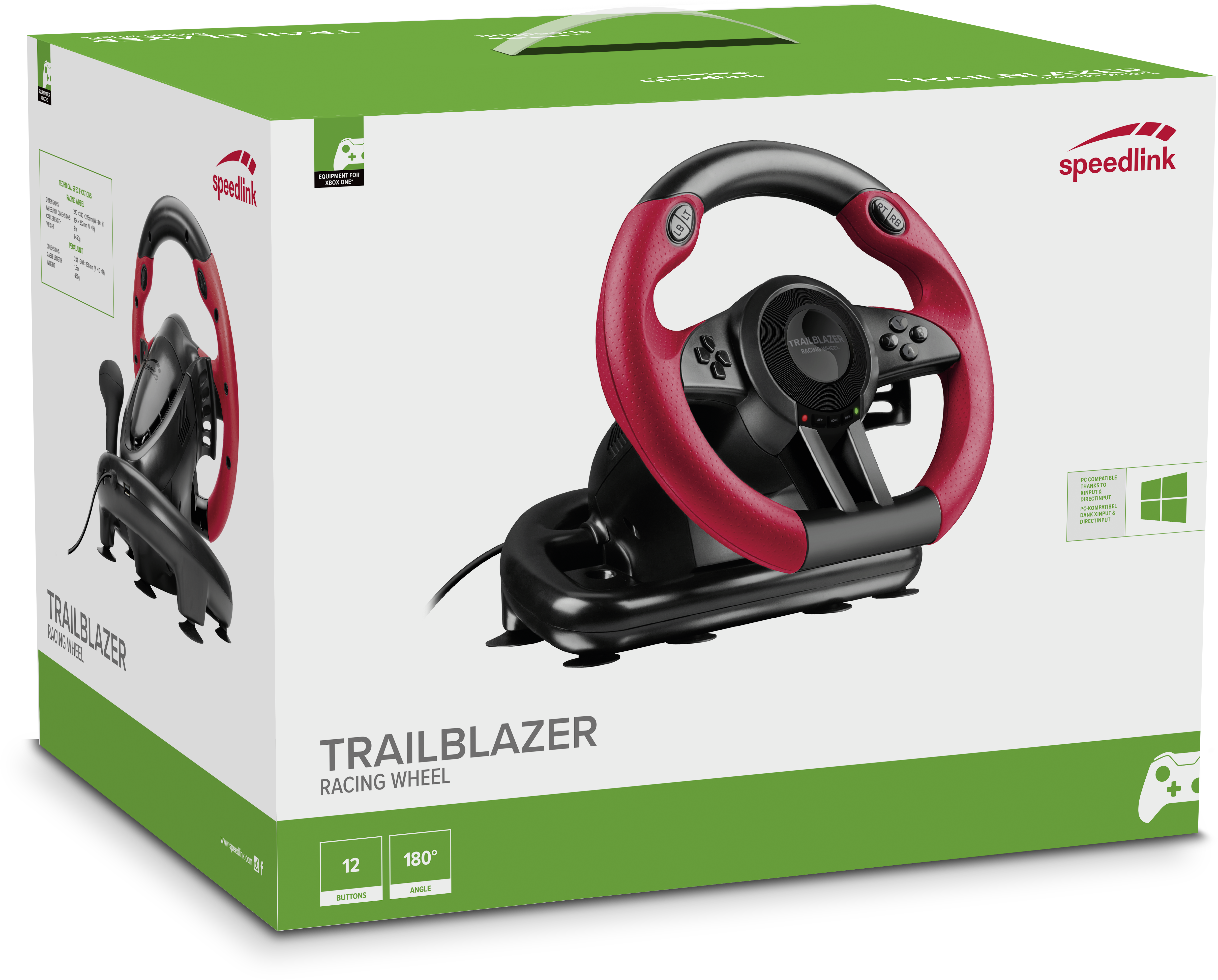Bitte beachte, dass das TRAILBLAZER über das USB-Kabel mit der Xbox One®-Konsole verbunden sein muss. In einer frühen Version der beiliegenden Bedienungsanleitung wurde darauf nicht hingewiesen. Wir bitten dich, diesen Fehler zu entschuldigen. Mit einigen Versionen der Xbox One S® und des zugehörigen Gamepads kann es dennoch zu Kompatibilitätsproblemen kommen. In diesem Fall lade dir bitte von der SPEEDLINK-Website unter www.speedlink.com das TRAILBLAZER-Firmware-Update-Programm herunter, mit dem du die interne Software des Lenkrads mithilfe eines Windows-PCs auf den neuesten Stand bringen kannst. Nach dem Firmware-Update sollte das TRAILBLAZER wieder problemlos an deiner Xbox One S® funktionieren.
