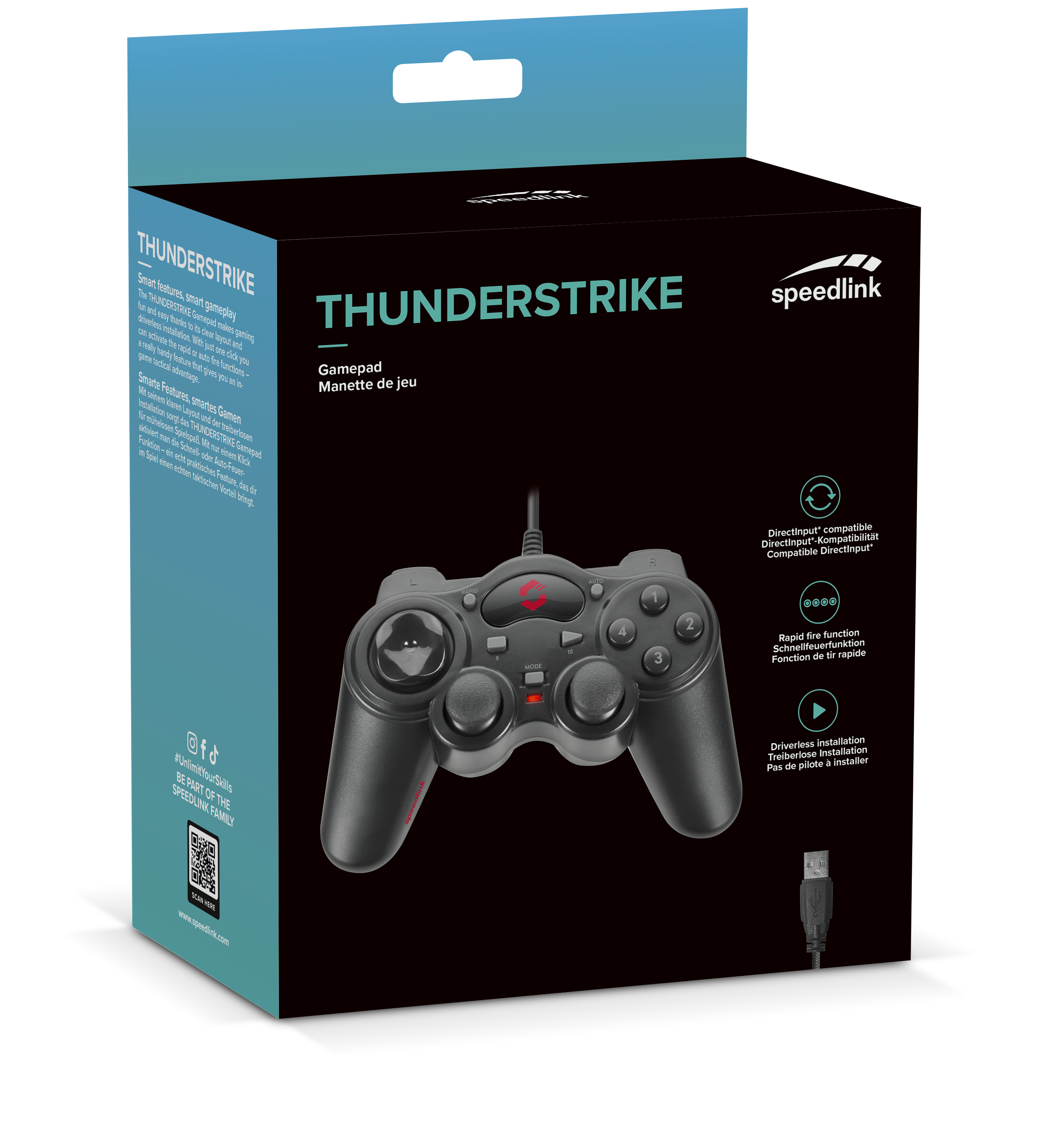 The THUNDERSTRIKE Gamepad makes gaming fun and easy on the PC thanks to its clear layout and driverless installation. It has eight digital buttons for action-packed games, plus it features four quick-access shoulder buttons and two analogue sticks for fast and precise commands. In addition, you can activate the rapid or auto-fire functions at the touch of a button – a really handy feature that gives you an in-game tactical advantage.