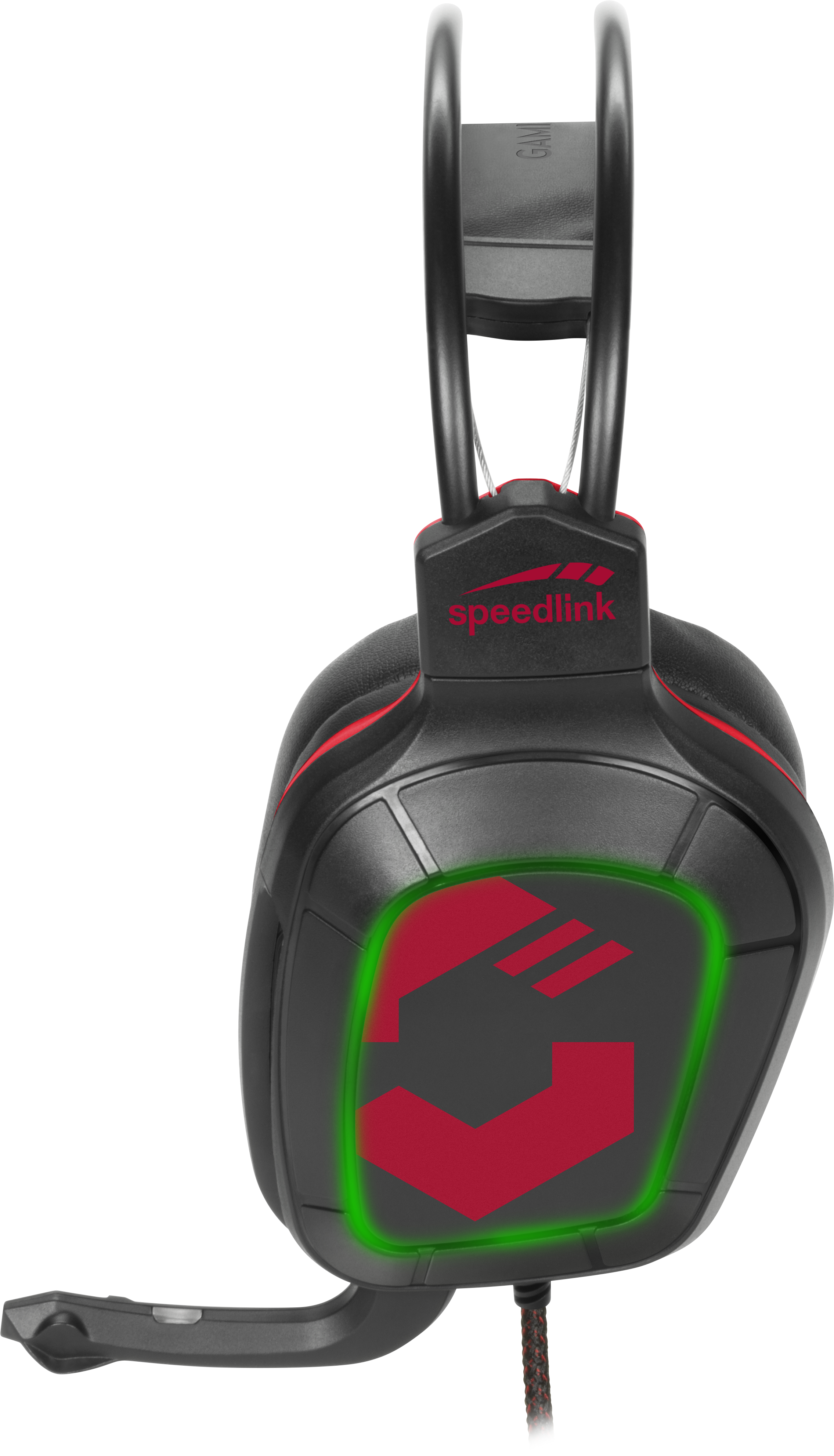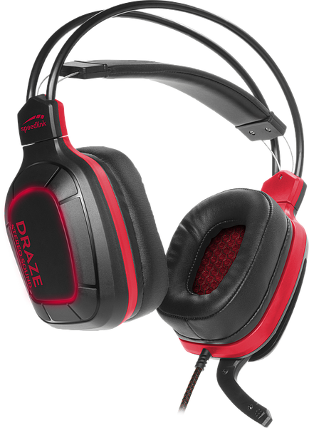 Das Design des DRAZE Gaming Headsets für den PC ist markant und mächtig, sein Sound klar und voluminös. Und seine Features vielseitig. Während deiner Gaming-Sessions profitierst du von ultra-weich gepolsterten Over-Ear-Ohrmuscheln, einem flexiblen Kopfbügel, der sich der Kopfform anpasst und von einem cleveren Mikrofonarm, der sich einklappen und dabei perfekt in der Ohrmuschel verstecken lässt, sodass dein Headset plötzlich aussieht wie normale Kopfhörer. Noch dazu aktiviert das Einklappen die automatische Stummschaltung des Mikros. Natürlich geht das aber auch über die praktische Kabelfernbedienung; hier regulierst du zudem die Lautstärke und vor allem die kraftvolle Beleuchtung des DRAZE in drei wählbaren Farben.