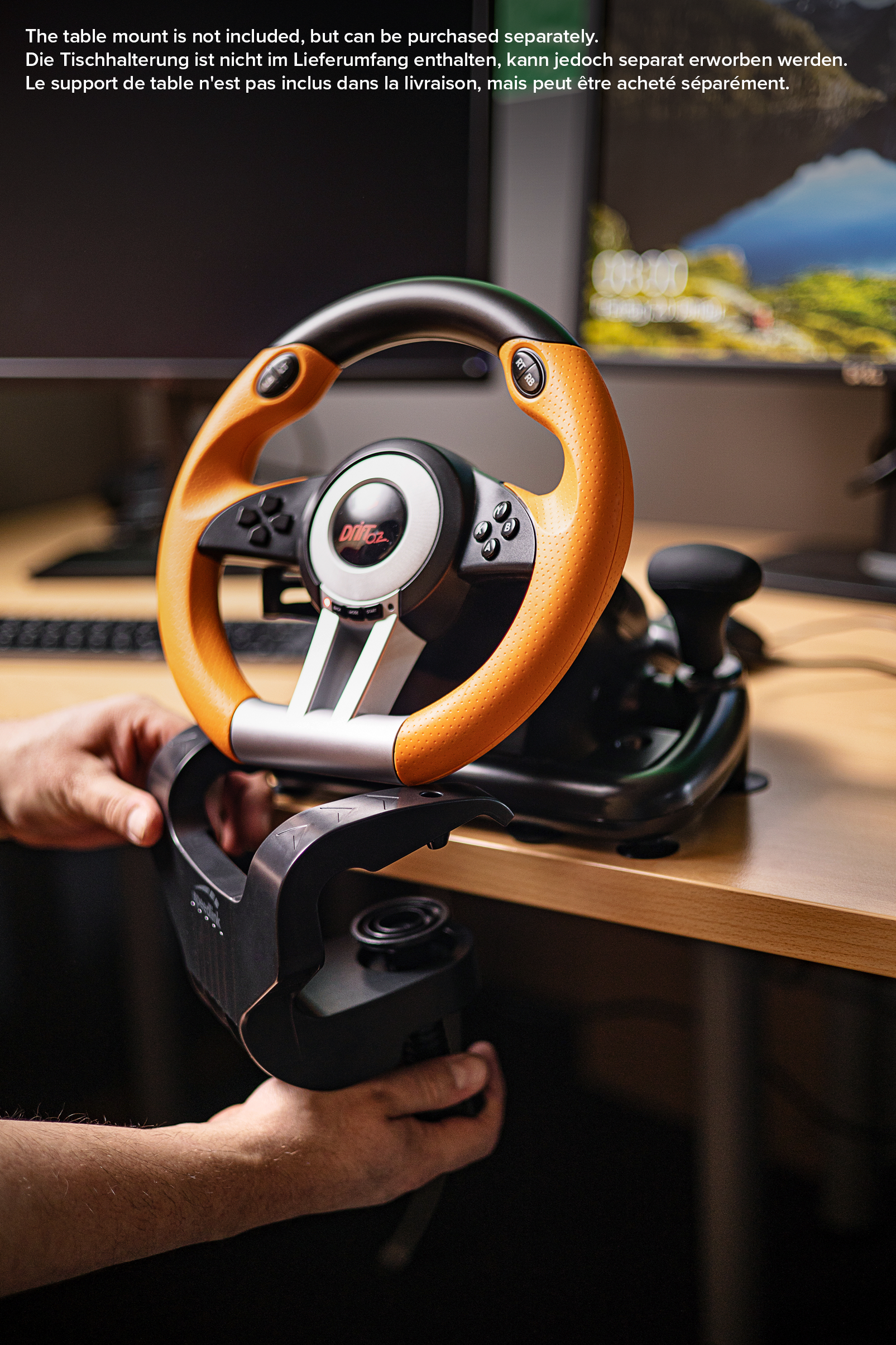 Kontrolle ist alles – vor allem auf der Rennstrecke. Das DRIFT O.Z. Racing Wheel gibt sie dir, die perfekte Kontrolle über jedes Fahrzeug: mit einem gummierten Lenkkranz für Griffigkeit und starken Saugnäpfen für besten Halt auch bei extremen Fahrmanövern. Mit einem professionellen Schaltknauf und fein dosierbaren Pedalen für die entscheidenden Zehntelsekunden. Die Vibrationsstärke ist einstellbar. Kontrolliere jedes Fahrzeug – und beherrsche jede Strecke.
