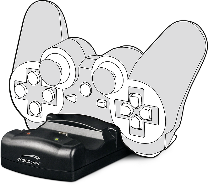 - bis zu zwei SIXAXIS®-/DUALSHOCK®3- oder SPEEDLINK® STRIKE-FX-Controller gleichzeitig aufladbar (SCPH-98040/CECHZC1, 98050/CECHZC2, 98051, 98052, 98053, 98055; STRIKE FX SL-4443-SBK-01)