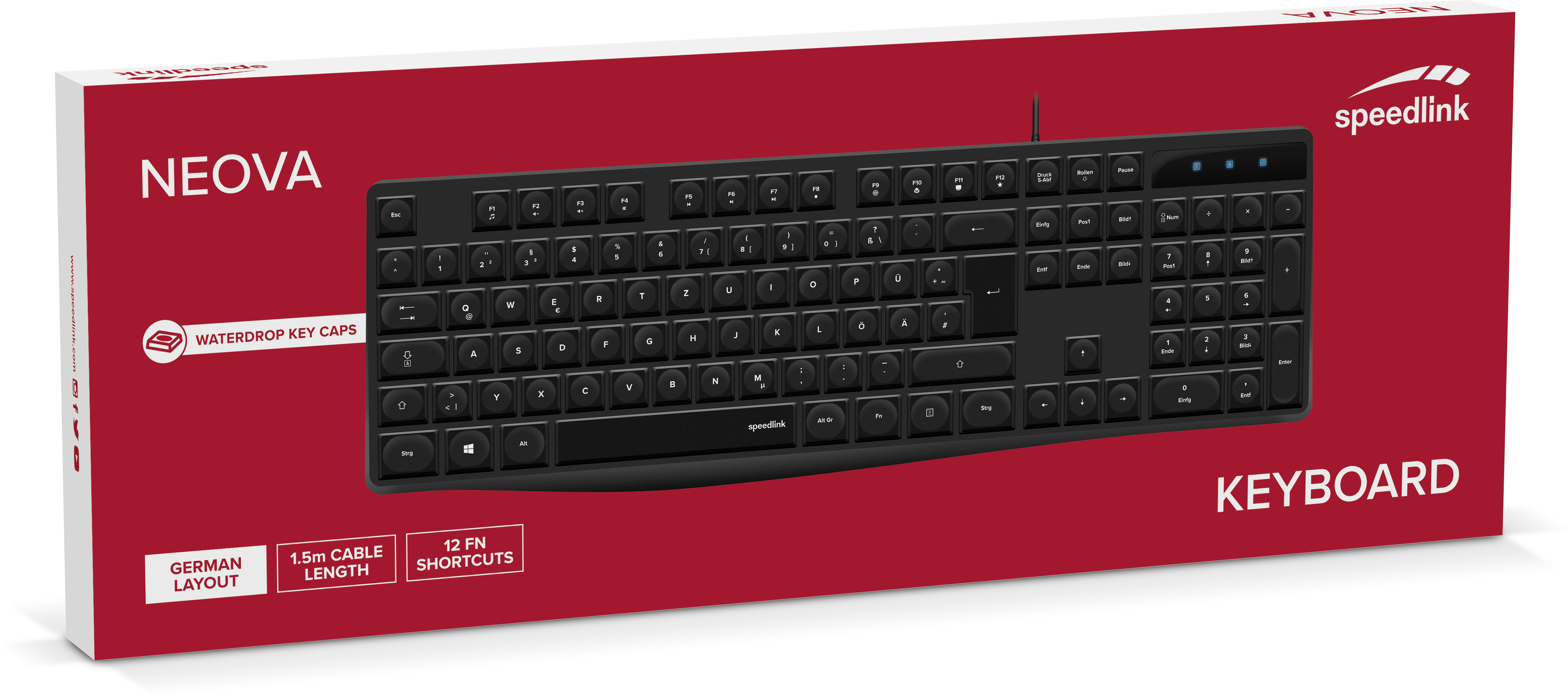 Das NEOVA Keyboard lässt sich super-fix installieren und angenehm bedienen. Unter seinen 105 Tasten des Vollformat-Tastenfelds befinden sich auch zwölf praktische multifunktionale Tasten, die den schnellen Zugriff auf wichtige Einstellungen ermöglichen. Als besonderes Extra sorgen die Tasten mit ihrer leichten Wölbung nach innen für eine Anpassung an die Finger und ein optimiertes Tippen.
