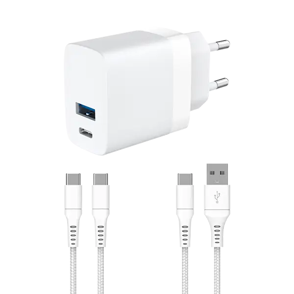 GaN Ladegerät & 2xKabel USB-A & USB-C, weiß