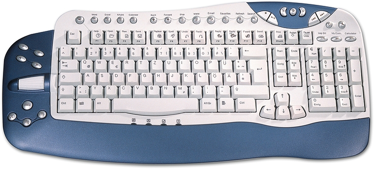 Das Office Keyboard Deluxe vereinfacht Routineaufgaben wie die Navigation über das Tastenrad, Ausschneiden, Kopieren und Einfügen! Internet-Tasten und Multimedia-Tasten ermöglichen es, per Tastendruck Lieblings-Websites oder das E-Mail-Programm aufzurufen, sowie die komfortable Bedienung von Audio- und Videowiedergabe. Praktische Anwendungstasten wie etwa ″Benutzer abmelden, Standby, Sleep, Arbeitsplatz, Rechner″ erleichtern den allgemeinen Umgang mit dem PC.