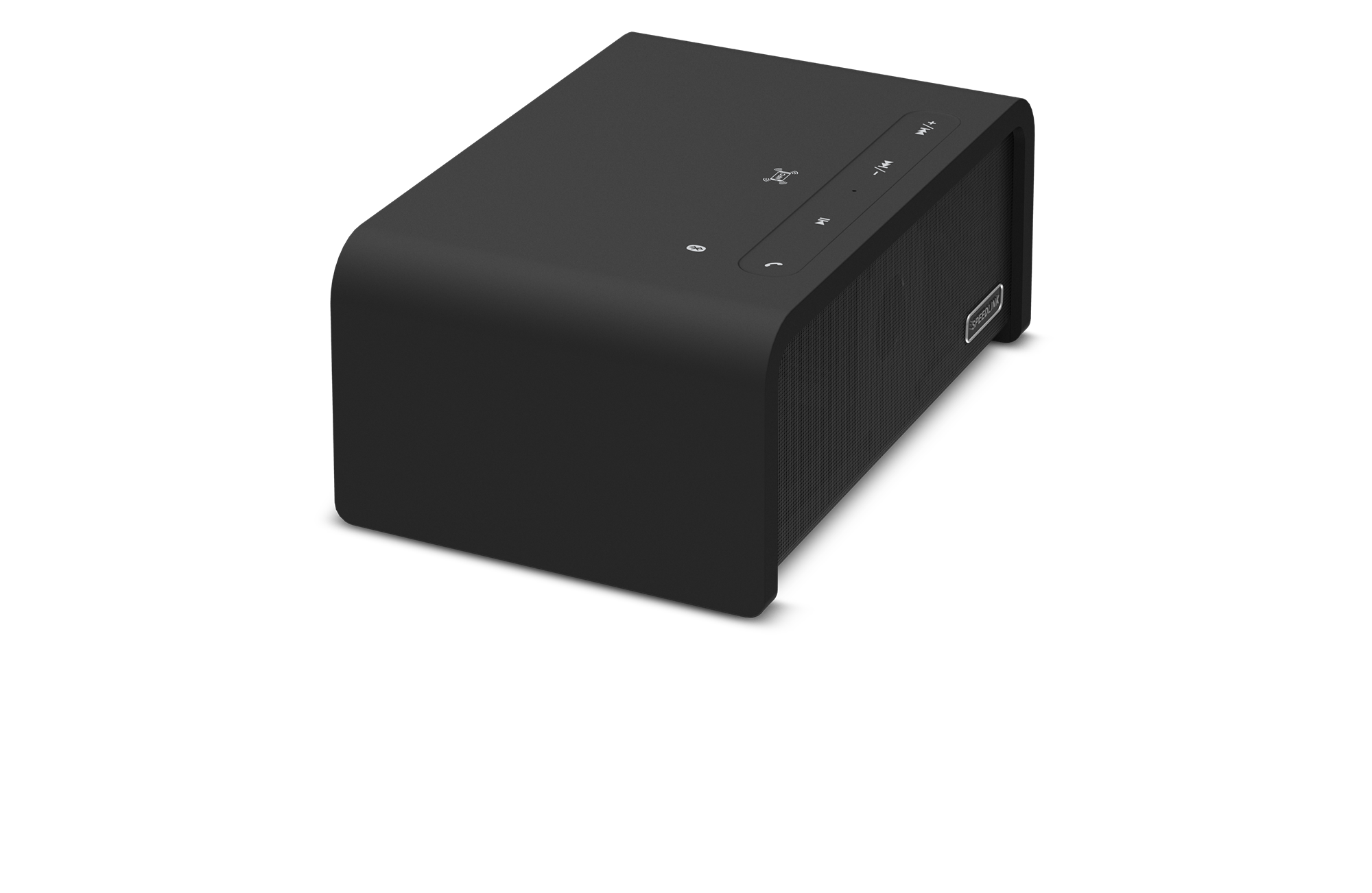 Per NFC, BLUETOOTH® oder Audio-Kabel - der PORTAJOY verbindet sich so einfach wie nie mit Ihrer Musikbibliothek und überzeugt mit kraftvollem Multimedia-Klang und starken Bässen, ob zuhause oder unterwegs. Den bequemen Transport ermöglicht der Tragegriff aus echtem Leder und dank der Sensor-Touch-Bedienung liegt die komfortable Auswahl der Musiktitel jetzt in Ihrer Hand. Aufgeladen wird der Speaker ganz einfach per Micro-USB-Port - für energiegeladenen Musikgenuss bis zu 25 Stunden. Lade- und zusätzliches Audiokabel sind natürlich im Lieferumfang enthalten.