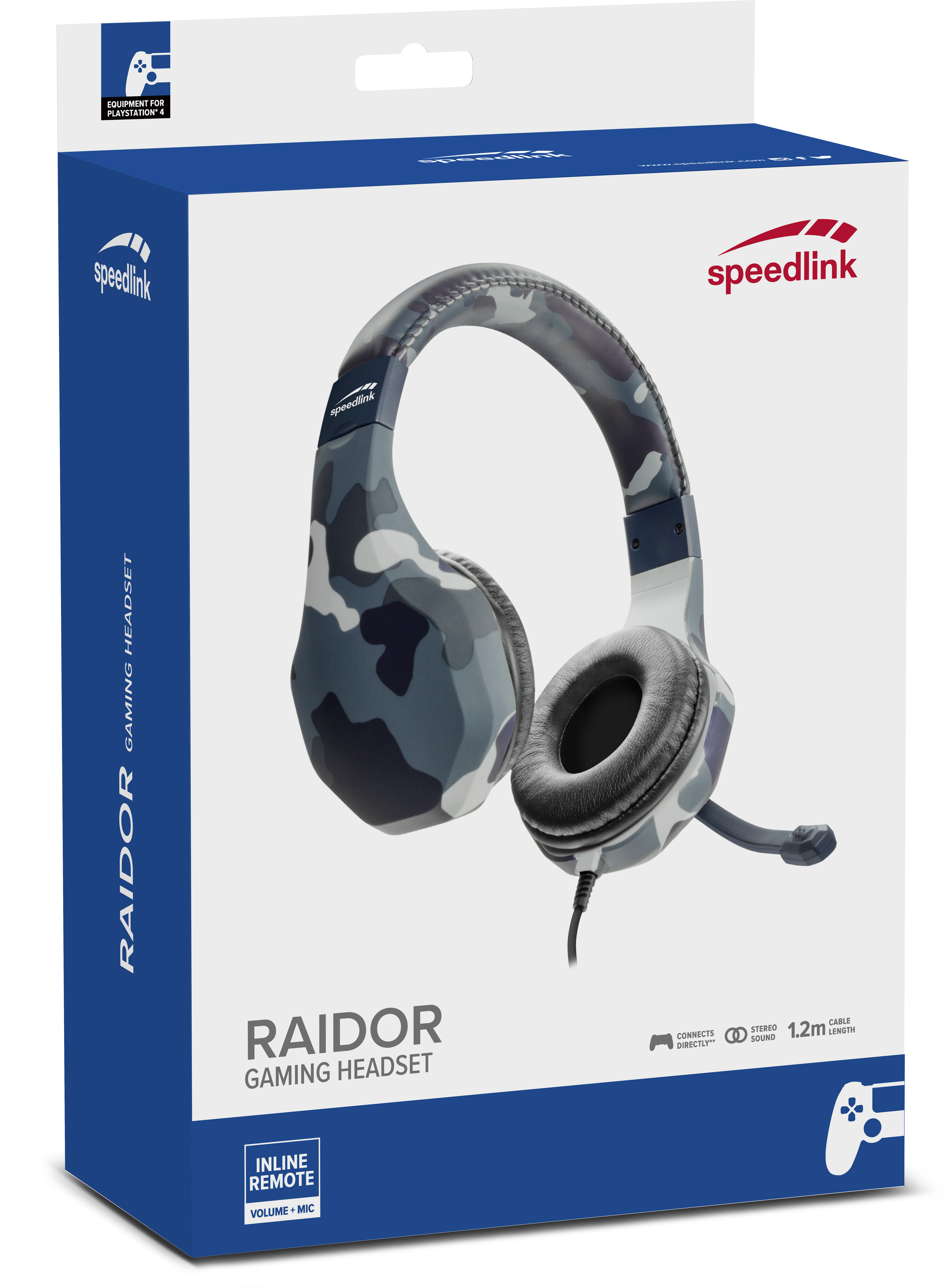 Im Camouflage-Look perfekt in der virtuellen Welt verborgen, geht es für dich mit dem RAIDOR Stereo-Headset für deine PS4® auf zu spannenden Fights und Einsätzen an der Konsole. Verbinde das Headset ganz einfach mit deinem Controller und schon bist du für stundenlanges Gaming bestens ausgerüstet: Die weich gepolsterten Ohrmuscheln sorgen für angenehmen Tragekomfort. Die praktische Kabelfernbedienung ermöglicht das Regeln der Lautstärke und das Stummschalten des Mikrofons mit einem simplen Handgriff. Und dabei genießt du auch noch besten Stereo-Sound und eine klare Sprachübertragung.