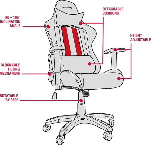 - Bequeme Polsterung an Rückenlehne, Sitzfläche und Armlehnen für stundenlanges Gaming
