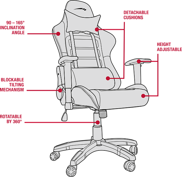 Versessen auf Gaming-Komfort? Der Regger ist ein Gaming-optimierter Schreibtischstuhl, der absolute Bewegungsfreiheit erlaubt und mit dem du selbst Teil der Action wirst: 360-Grad-Rotation, eine Rückenlehne mit einstellbarem Neigungswinkel, höhenverstellbare Lendenwirbel-Unterstützung und Armauflagen sowie eine blockierbare Wippmechanik sind nur einige der Highlights, die der Gaming-Chair mit dem sportlichen Look zu bieten hat. Das ideale Refugium, um sich für Stunden und Tage in den eigenen vier Wänden zu verschanzen und das neueste Spiel zu meistern.