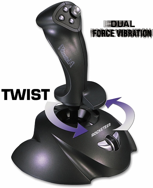 Der Stick vibriert in der Hand und setzt die Spielgeschehnisse umgehend um. Der Schub kann präzise über ein Rad an der Basis des Rocketeers kontrolliert werden. Mit Drehung des Sticks bietet sich eine hervorragende weitere Kontrollmöglichkeit, die beispielsweise zur Ruderkontrolle genutzt werden kann. Die Rundumsichtkontrolle ist an der Spitze des Sticks angebracht und kann neben Raumumsicht auch die Kontrolle diverser Arsenale übernehmen. Der Anschluss an den PC erfolgt über USB.