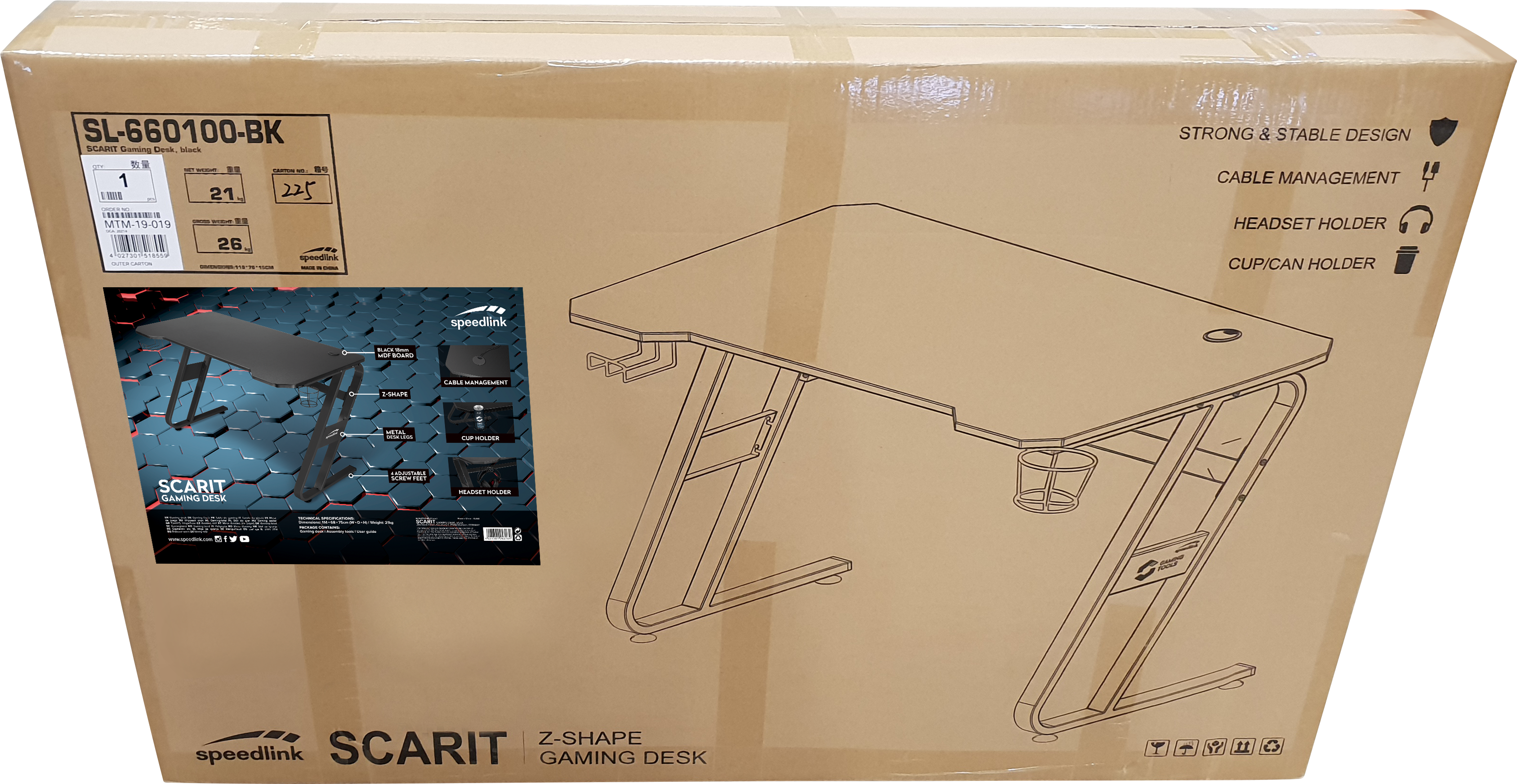Der SCARIT Gaming Desk ist dein standfester Begleiter, mit dessen Unterstützung du actionreiche Herausforderungen und Gefechte meisterst. Dank der Tischbeine mit Z-Shape und der Gaming-optimierten, weit oben platzierten Querstange kannst du dich beim Zocken ohne Hindernisse frei bewegen. Außerdem sorgst du mit den Features des SCARIT für Ordnung: Auf einer speziell dafür geformten Halterung sind Kopfhörer oder Headsets sicher aufbewahrt. Die Vorrichtung fürs Kabelmanagement in der Tischplatte verhindert lästiges Kabelwirrwarr, damit dein Gaming-Setup ungestört zur Geltung kommt. Last but not least kannst du im perfekt erreichbaren Getränkehalter deinen persönlichen Heiltrank abstellen und dich jederzeit mit einem Energie-Kick versorgen.