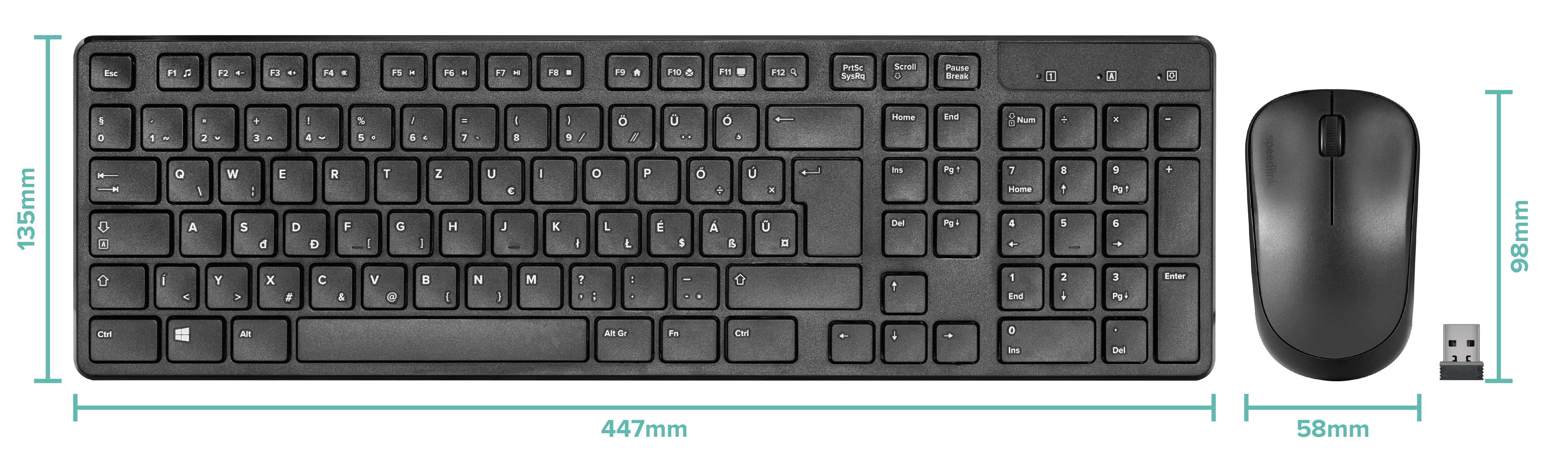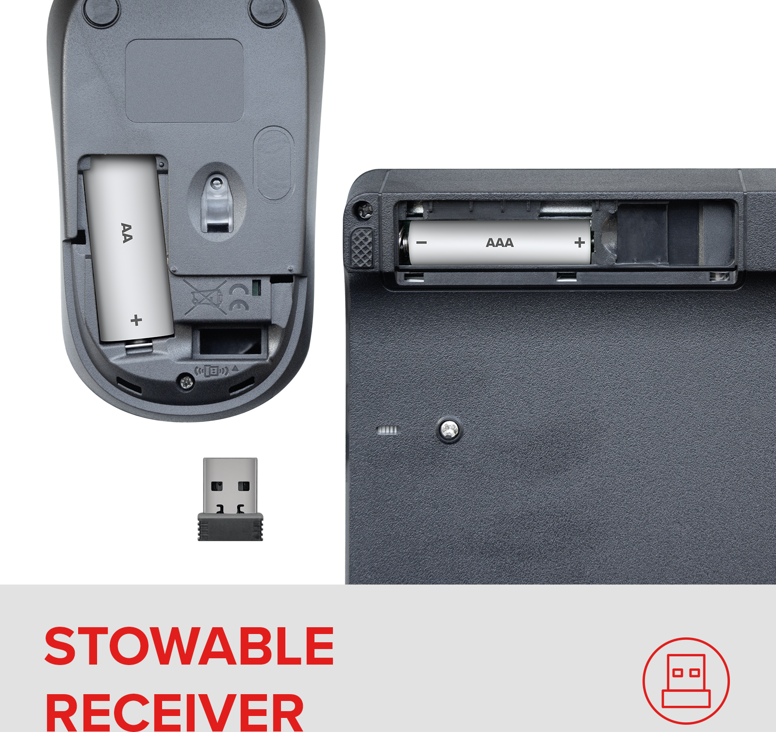 - Verbindung Maus und Tastatur: 1 x USB-A Empfänger