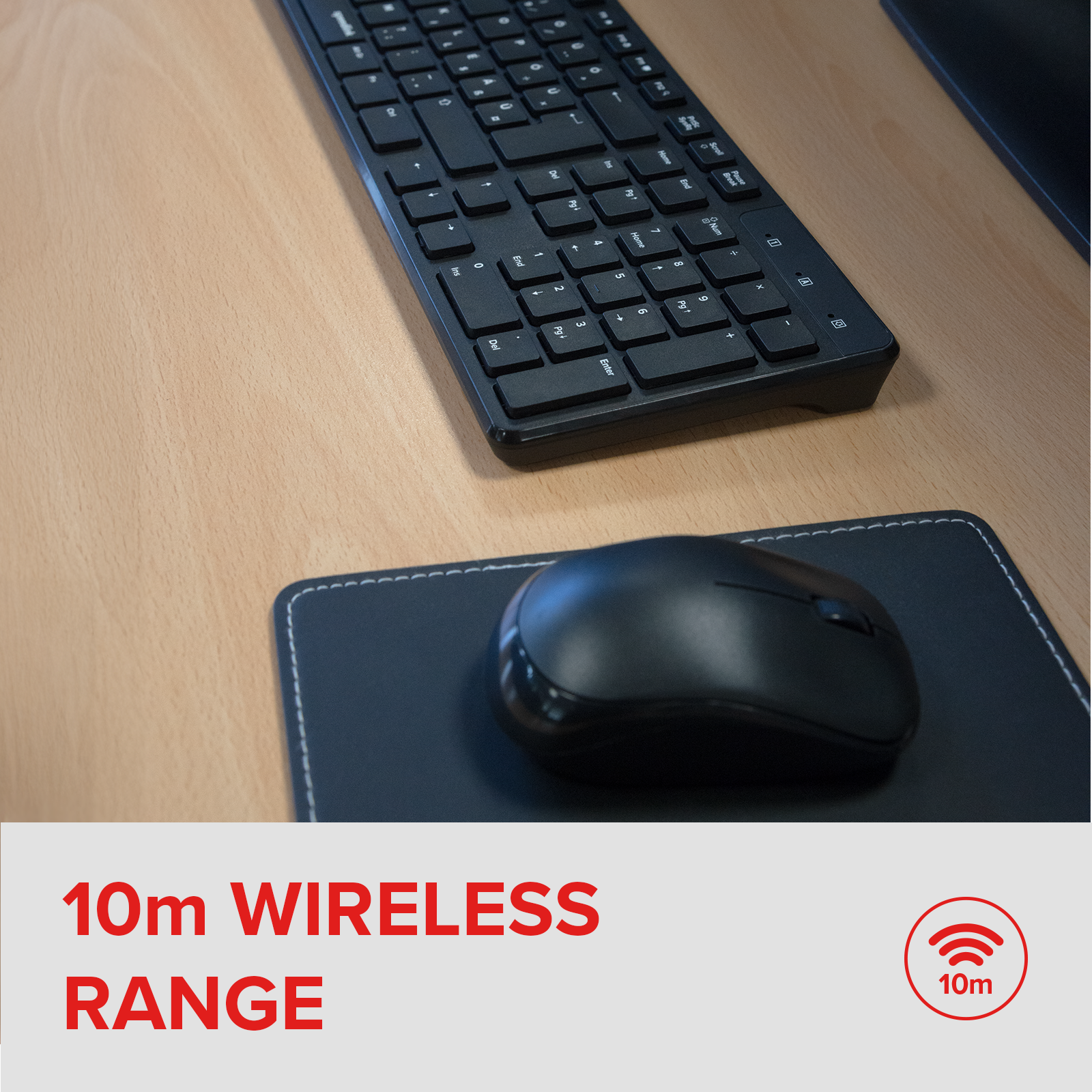 Das kabellose SIGNIUM Deskset bestehend aus Maus und Tastatur ist der ideale Begleiter für sämtliche Aufgaben des Computeralltags. Die Tastatur mit ihrem Vollformat-Tasten-Layout und zwölf Multifunktions-Tasten ermöglicht effizientes Arbeiten mit bester Übersicht und Funktionalität. Dank der zuverlässigen 2.4GHz-Funkverbindung bietet es maximale Flexibilität im täglichen Gebrauch. Das klare Design sorgt für einen kontinuierlichen Arbeitskomfort. Ergänzt wird die Tastatur durch die präzise 3-Tasten-Maus, die mit ihrem optischen 1.200-dpi-Sensor für hohe Genauigkeit sorgt. Auch die Maus garantiert eine kabellose Freiheit und ist über denselben USB-A-Empfänger wie das Keyboard verbunden. Das SIGNIUM Deskset ist eine kombinierte Lösung, die sowohl komfortabel als auch einfach zu bedienen ist. Ob im Büro oder zuhause, dieses Deskset ist die perfekte Wahl für vielseitige Anforderungen.