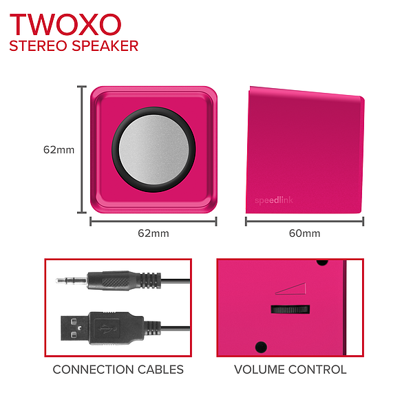 Zwei platzsparende „Zauberwürfel“ mit imposantem Sound: Die TWOXO Stereo Speaker kommen im kompakten Würfeldesign mit einer Kantenlänge von gerade einmal sechs Zentimetern daher. Bei minimalem Installationsaufwand liefern die kompakten Lautsprecher einen unverschämt kräftigen Multimedia-Sound für alle Anwendungsbereiche. Musik, Spiel oder Video; PC, Tablet oder Smartphone – Sie entscheiden!