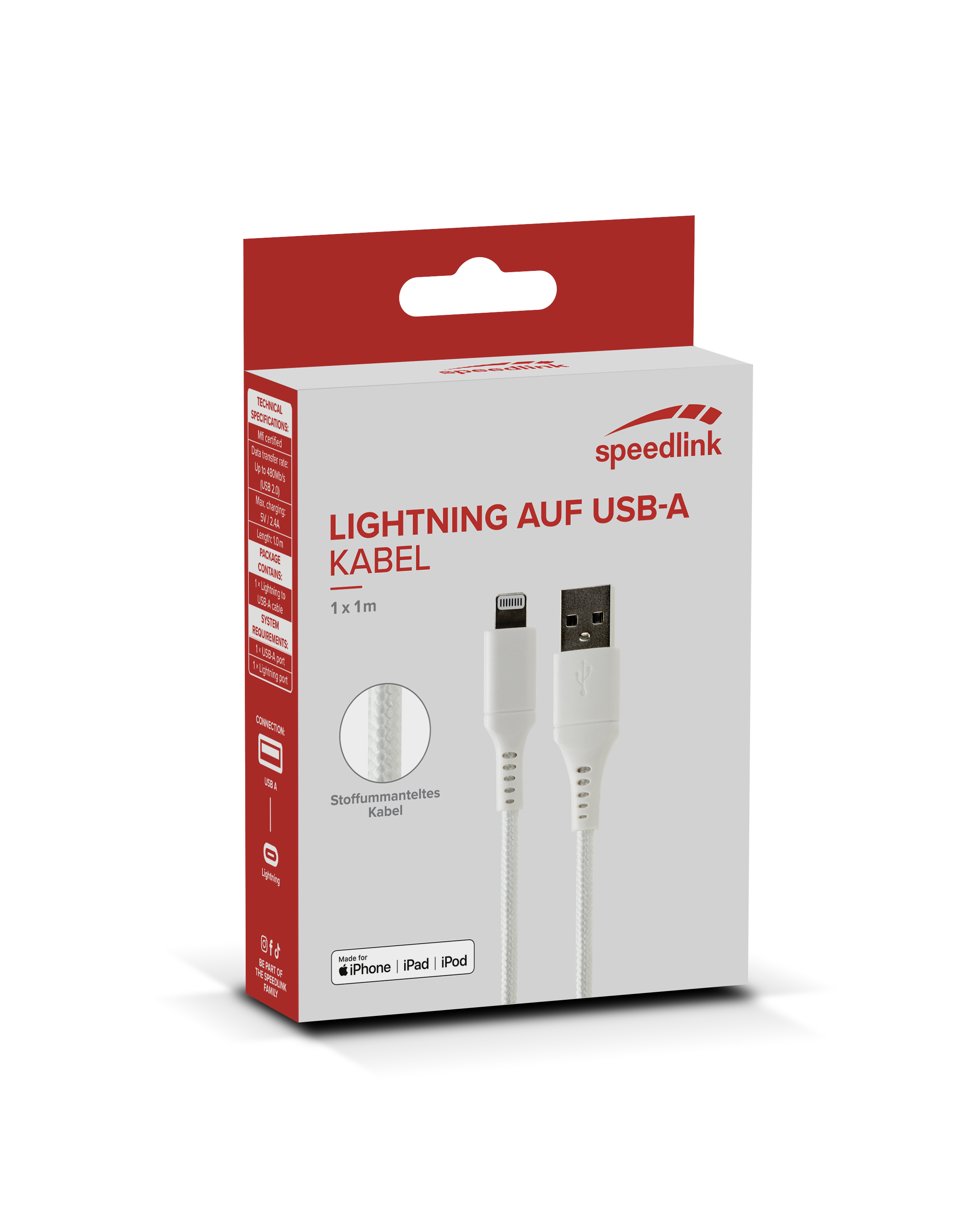 Mit dem Lightning Kabel können viele Apple Geräte einfach mit Geräten mit USB-A Anschluss verbunden werden. Mit einer Übertragungsrate von bis zu 480Mb/s werden schnell Daten von einem Gerät zum anderen überspielt. Ist ein Ladegerät mit USB-A Anschluss vorhanden, kann das Kabel auch als Ladekabel genutzt werden.