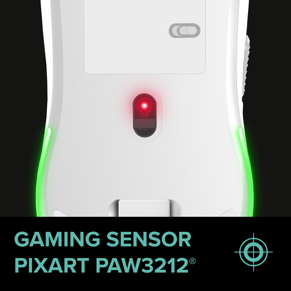 - Präziser optischer Pixart Sensor PAW3212 mit 800/1.200/1.600/2.400 (real)/4.800 dpi (interpoliert)