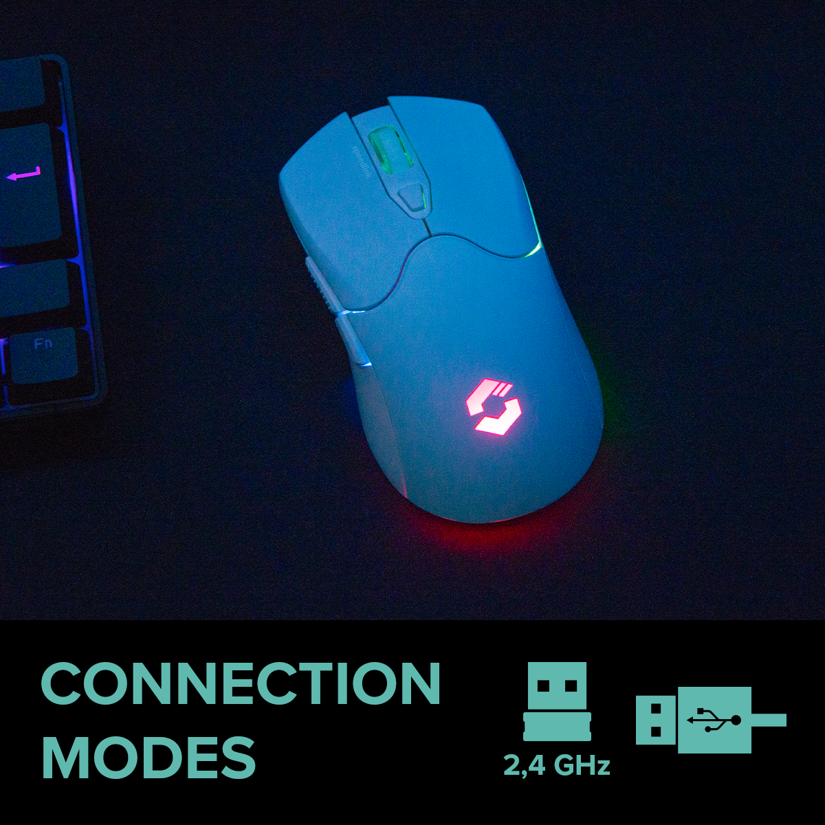VELOX Wiederaufladbare RGB Gaming Maus - kabellos, weiß
