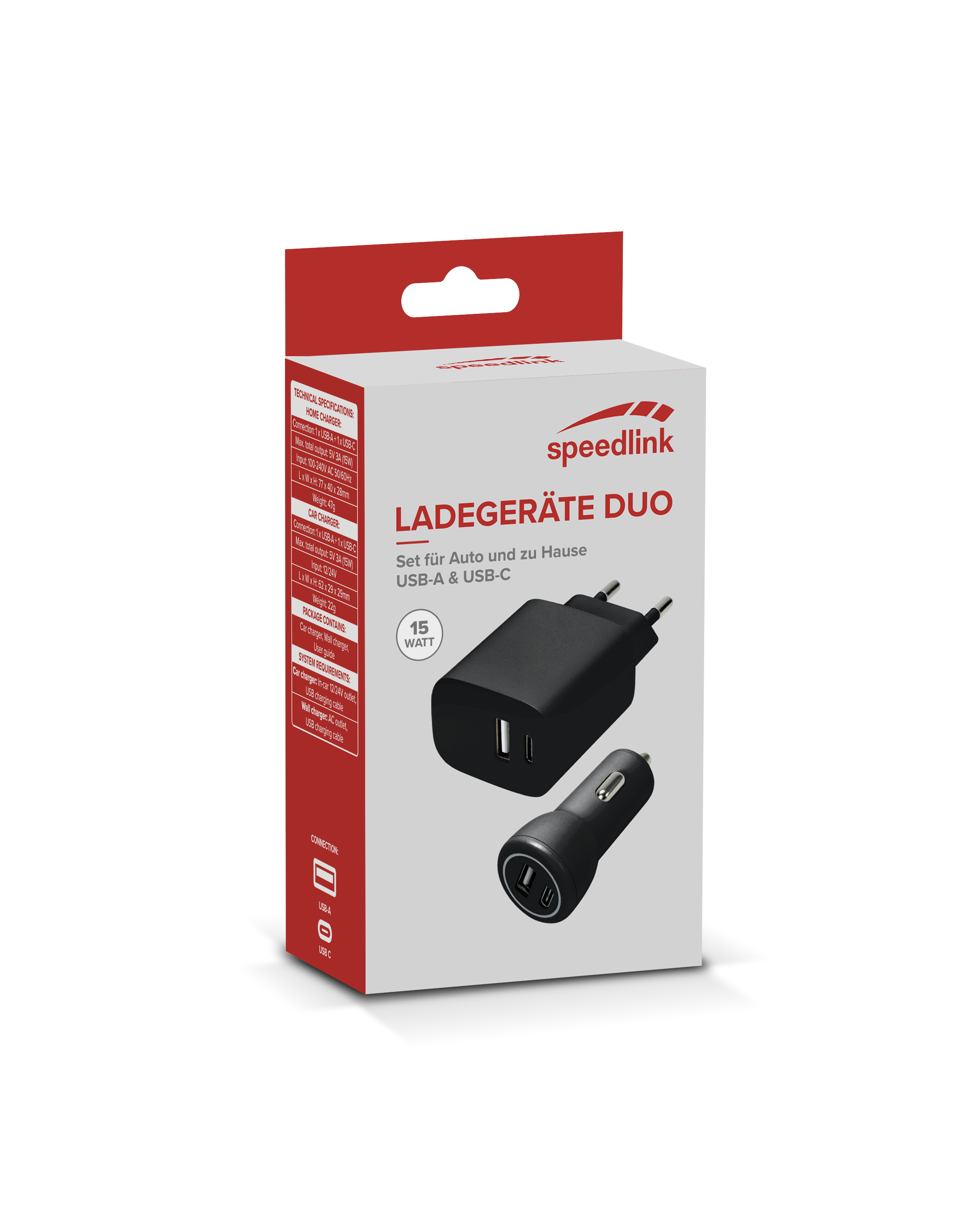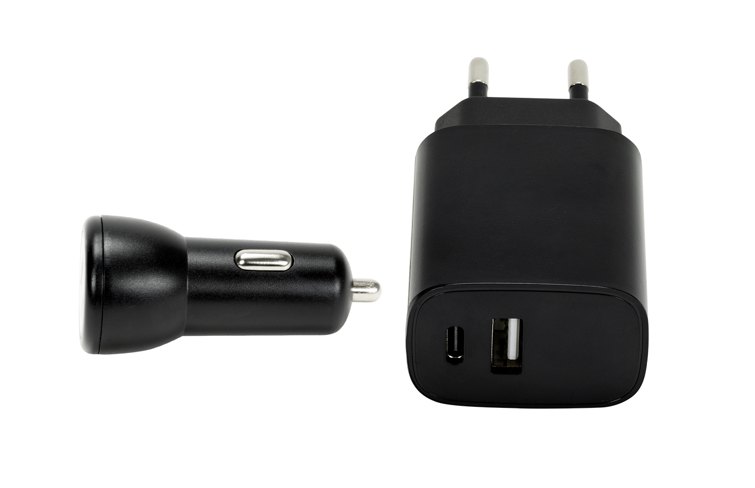 Wand- & Autoladegerät-Set USB-A & USB-C 15W, schwarz