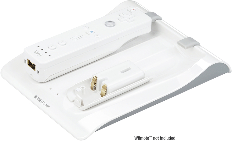 Mit dieser Ladestation können Sie bis zu zwei Wiimotes™ oder Akku-Sets gleichzeitig oder auch einzeln aufladen. Silikonhüllen, Nunchuk™ oder MotionPlus™ müssen nicht entfernt werden. In der Ladestation wird ein Induktionsfeld erzeugt, so dass es genügt, die Wiimotes™ einfach auf die Schale zu legen, ohne sie zu verbinden. Das Laden funktioniert auch bei ausgeschalteter Wii™-Konsole. Als Überladeschutz dient die automatische Stromunterbrechung nach 6 Stunden. Zwei Akku-Sets im Lieferumfang enthalten.