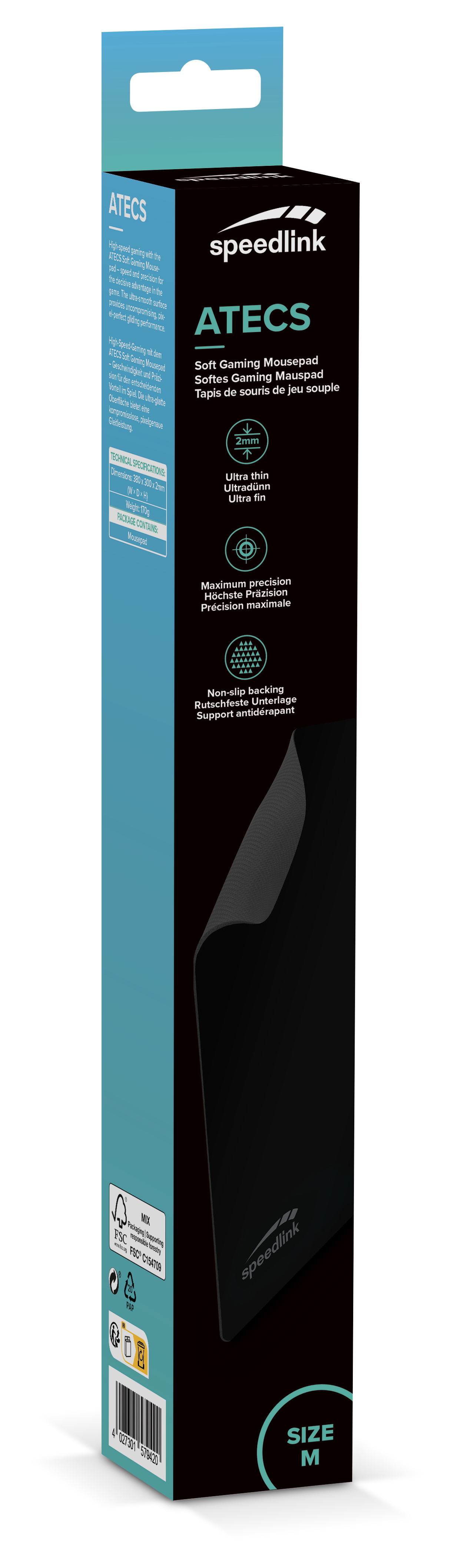 Get the ultimate in control: gain the decisive advantage in terms of speed and precision with the ATECS Gaming Mousepad. Its ultra-smooth surface is perfect for a fast gaming style, offering uncompromising, pixel-perfect gliding performance. In the heat of gameplay the ATECS mousepad provides maximum grip and dependability whatever the situation thanks to its hard-wearing material and non-slip backing.