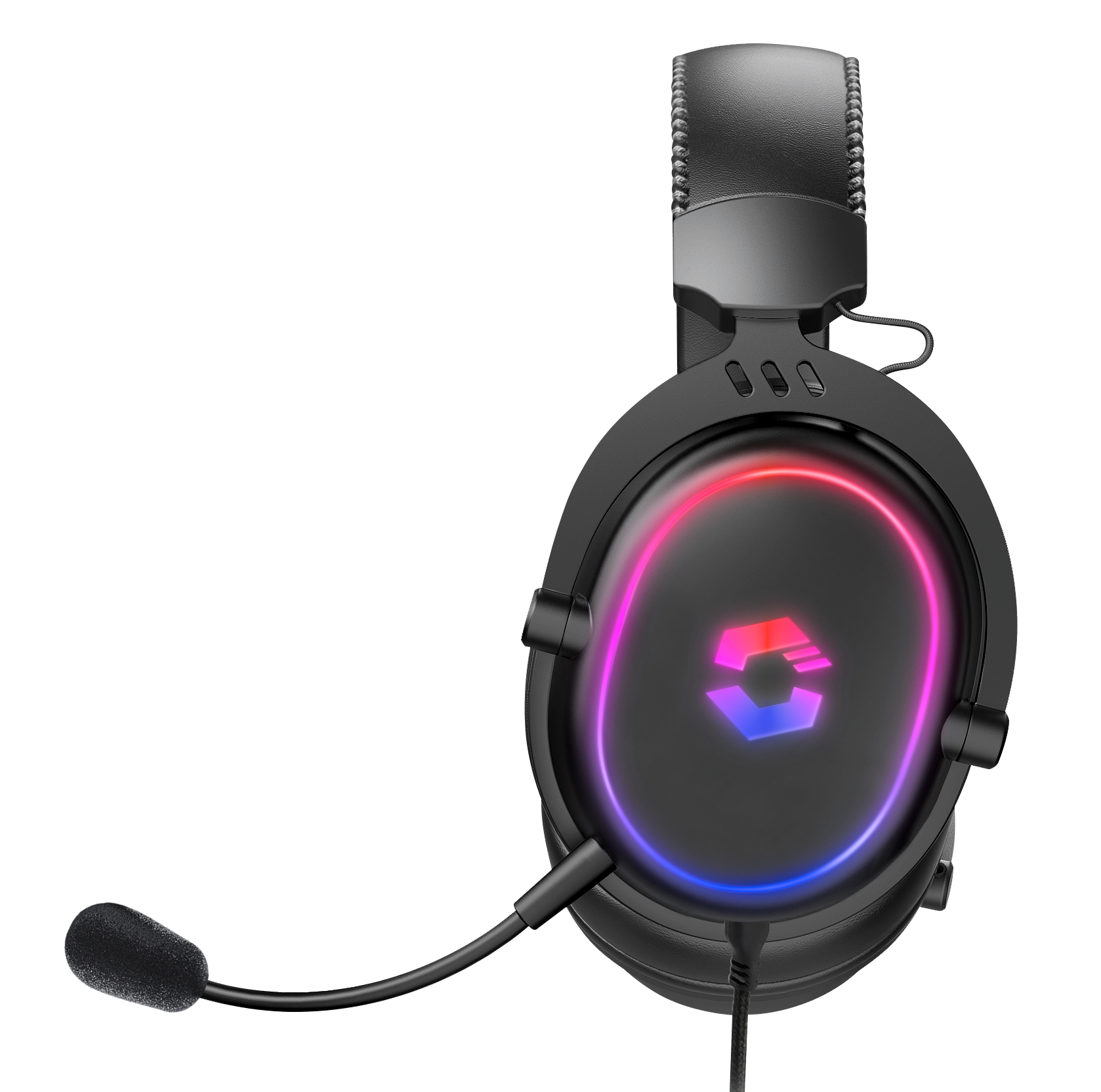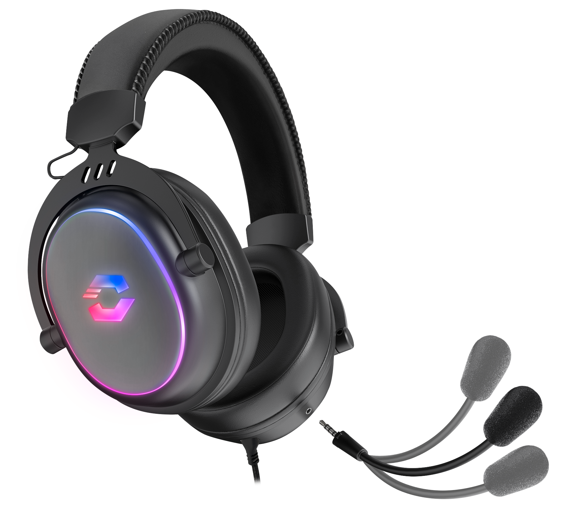 The CONUX RGB stereo gaming headset has powerful 50mm driver units and reproduces all aspects of the game with crystal-clear precision, from deep bass to high treble. The multi-coloured RGB illumination creates an atmospheric ambience. Comfort is paramount, with ultra-soft padding and a robust metal frame for long-lasting comfort and durability. The variable size adjustment and the detachable, sensitive microphone with flexible arm enable perfect adaptation to any situation in the game. The integrated cable remote control provides quick access to volume control and microphone mute. At the same time, the 3.5 mm jack plug and the supplied adapter offer universal compatibility with all common gaming platforms, from PC to PS5, PS4, Xbox and Switch, making the CONUX RGB stereo gaming headset a versatile companion.