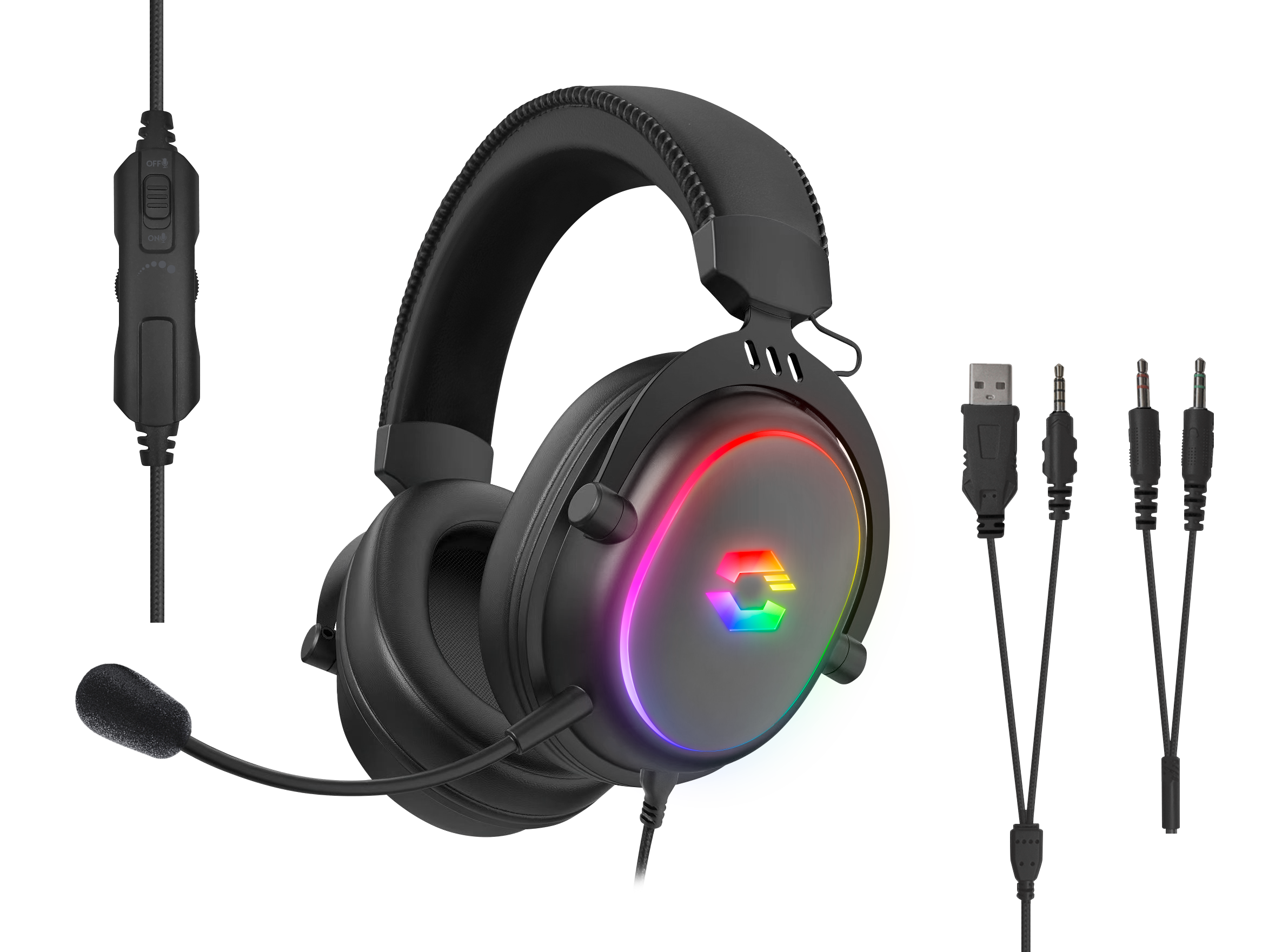 - RGB stereo gaming headset for connection to PC/PS5/PS4/Xbox Series X/S/Switch 2/Switch/OLED/Lite