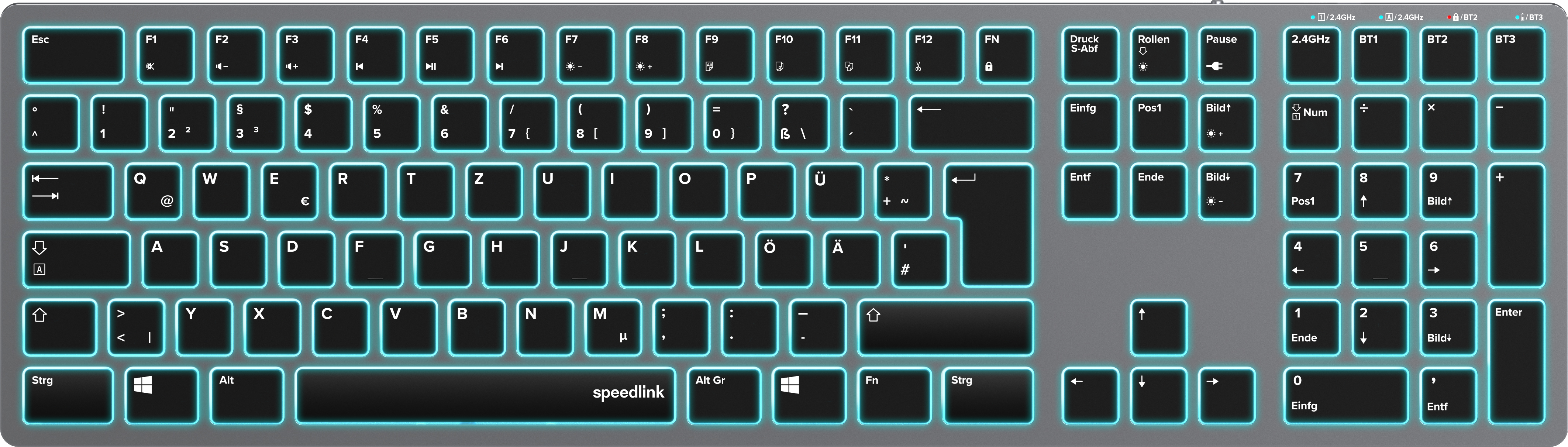 LEVIA RGB Rechargeable Metal Office Scissor Keyboard - Wireless, Bluetooth, grey - DE Layout