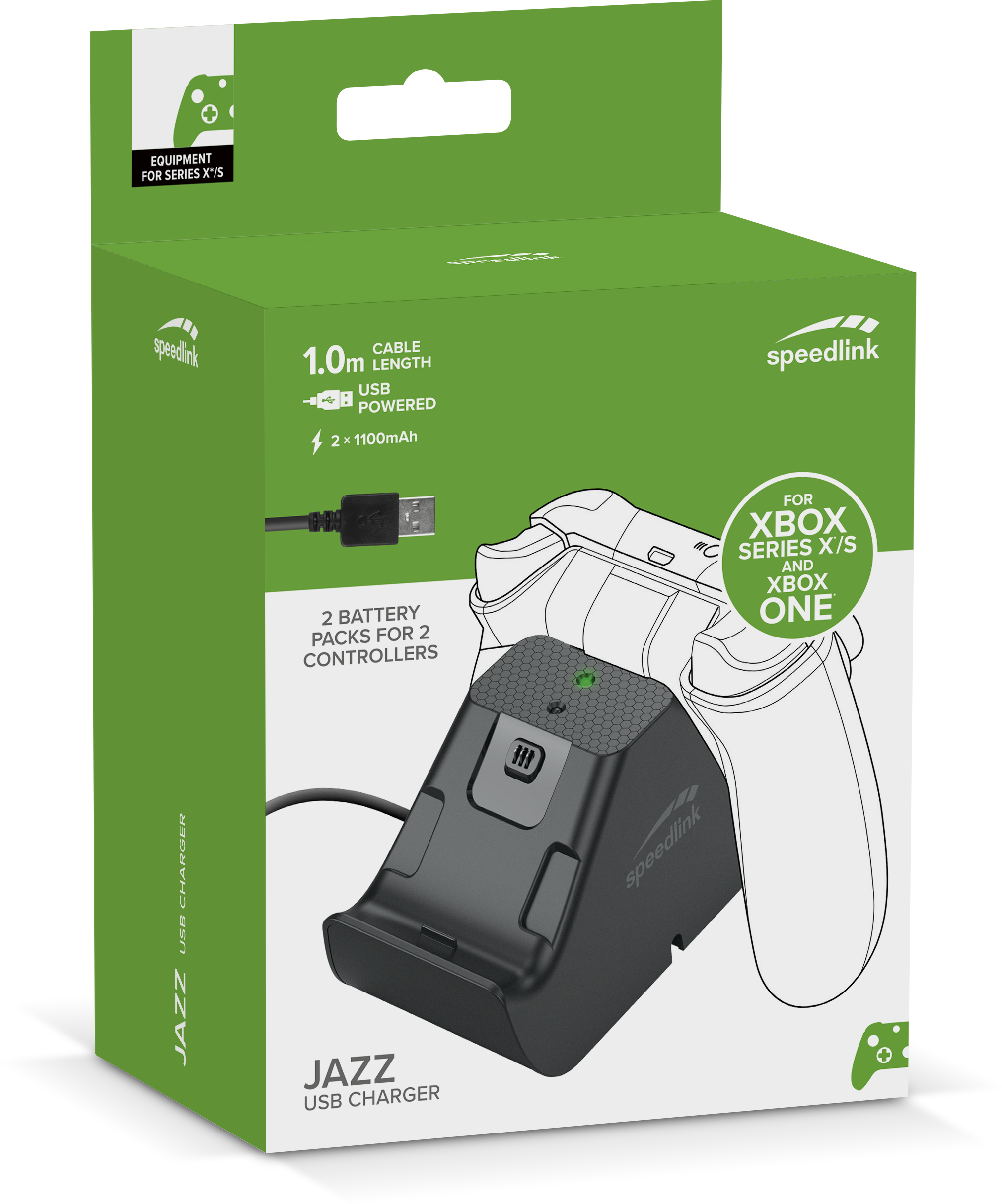"...Der Speedlink Jazz USB Charger sorgt dafür, dass die Controller für Xbox One oder Xbox Series X|S Konsolen gut verstaut gelagert werden. Die Ladungen der NiMH-Akku-Packs geht schnell vonstatten und im Langzeittest konnten keine Probleme festgestellt.