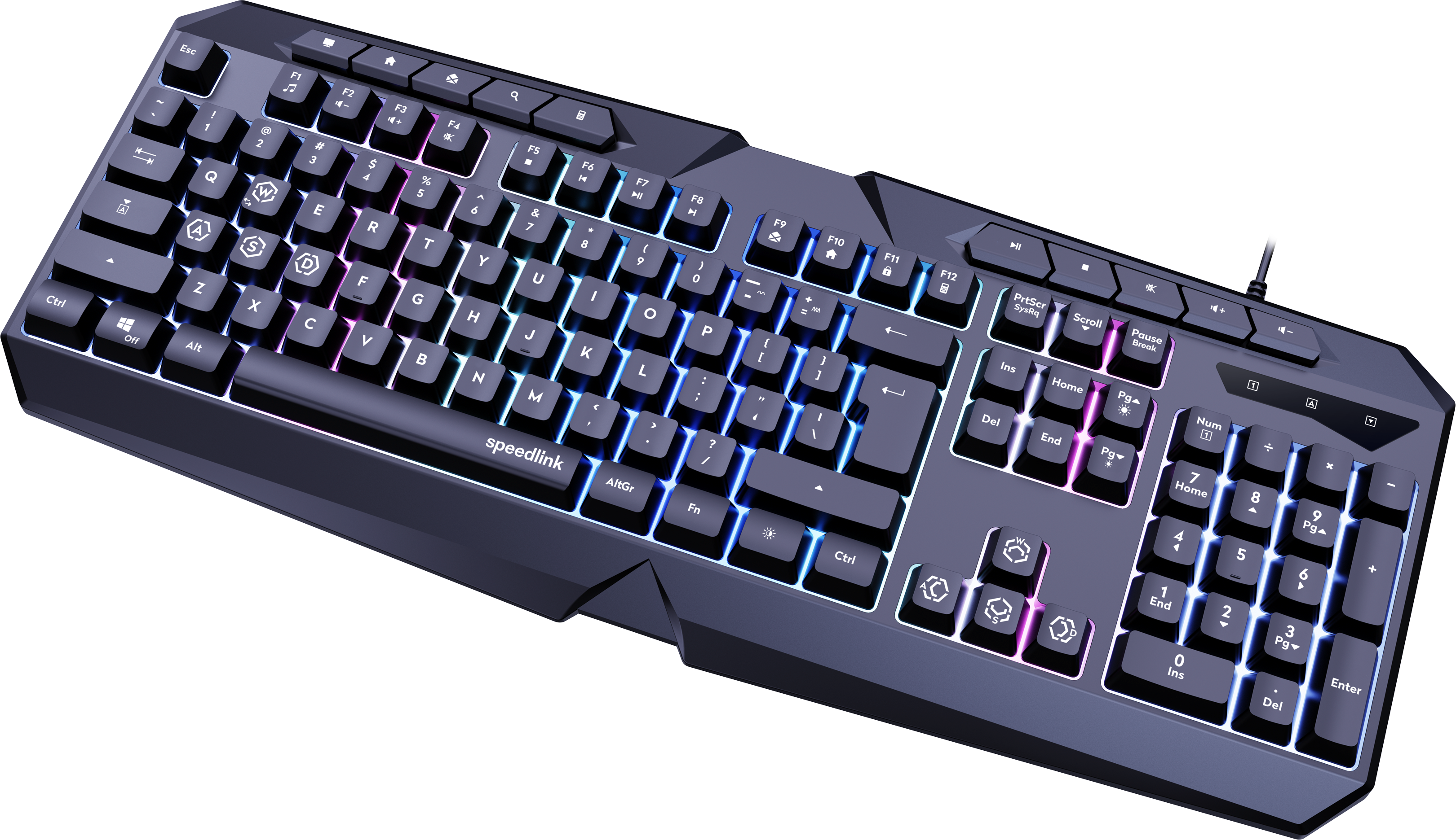 To triumph in the virtual arena, the selection of tactics and equipment is crucial. That's why the LUDICIUM Gaming Keyboard, with 10 extra keys for swift access to PC and multimedia applications, brings the necessary superiority into play. Unplanned interruptions in the midst of fierce combat are reliably blocked by the Windows Key Lock. The WASD keys can be converted to arrow keys with a simple command. The robust membrane technology, capable of up to 10 million keystrokes, combined with the full-size keyset and height adjustment, ensures enduring, comfortable gaming fun. The various modes of RGB backlighting not only ensure clear visibility but also create an atmospheric gaming environment.