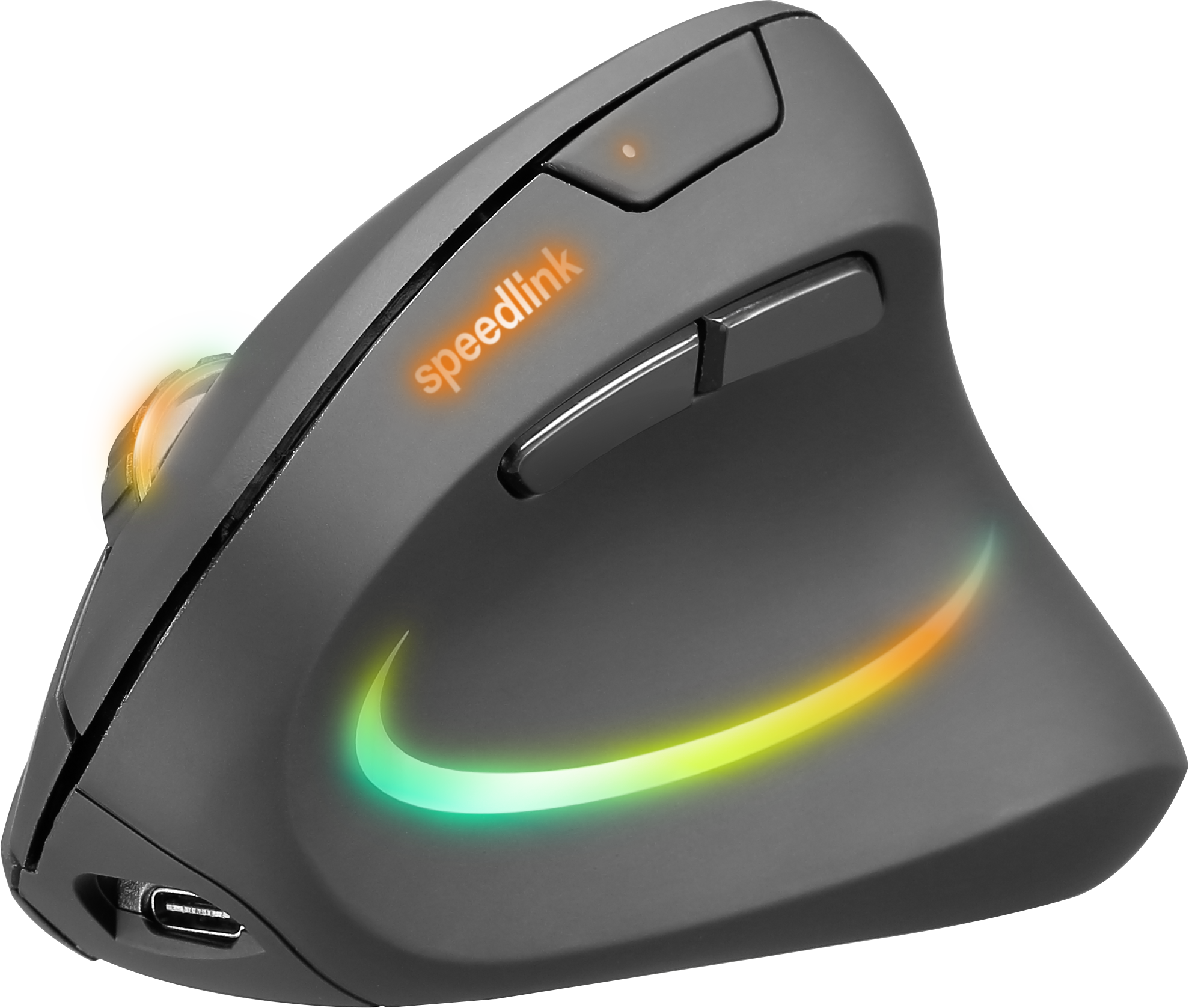Appearance meets functionality and comfort. With the PIAVO PRO RGB Rechargeable Vertical Mouse, working on the computer becomes a pleasure. The ergonomic, vertical shape of the mouse promotes natural hand position and prevents impairment and long-term damage to the wrist, shoulder and neck. With the silent main buttons performing clicks that are quiet but precise. In addition, the PIAVO PRO scores with its functional properties. Whether at the desk or elsewhere in the room - the wireless connection with a range of up to 10 metres ensures maximum flexibility when working. The rechargeable 500mA strong lithium-ion battery and the intelligent power-saving mode ensure lasting high performance. The dpi switch can also be used to vary the sensor resolution as desired. The visual highlight of the PIAVO PRO is its multicoloured RGB lighting, which is guaranteed to put you in a good mood.