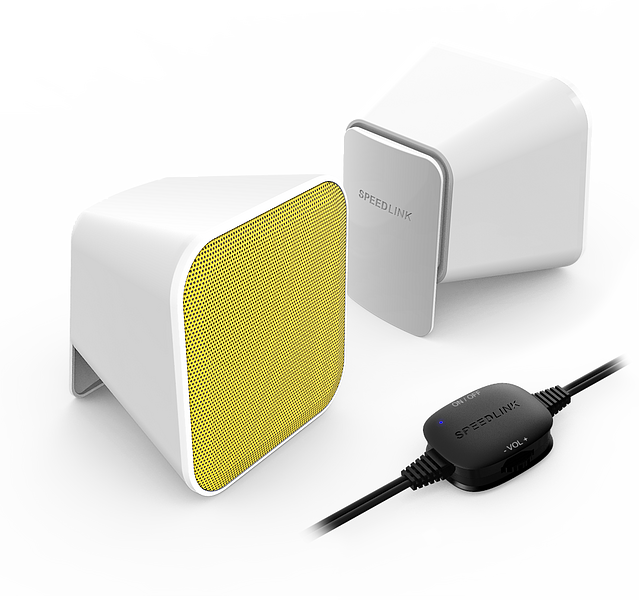 Lead a mobile lifestyle? Then you need some music to go along with it – SNAPPY Stereo Speakers will deliver this wherever you are. Their compact design and low weight make them the perfect companion for your notebook or smartphone – plus, you’re freed from the mains as they’re USB powered. Thanks to their trendy design, they’ll also look good on your desktop – or anywhere where you need big sound in a little package.
