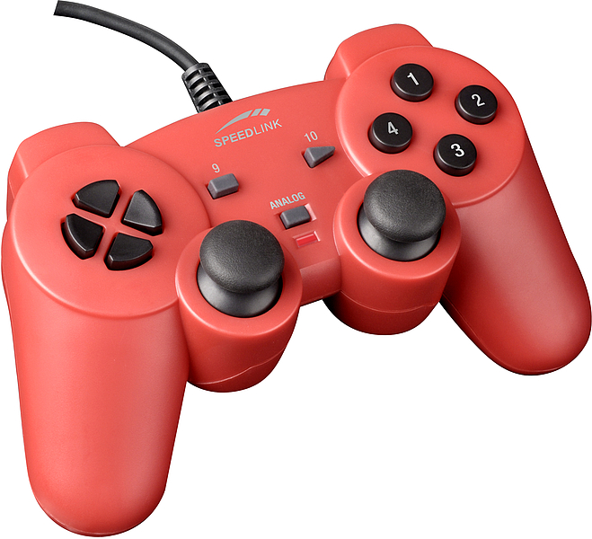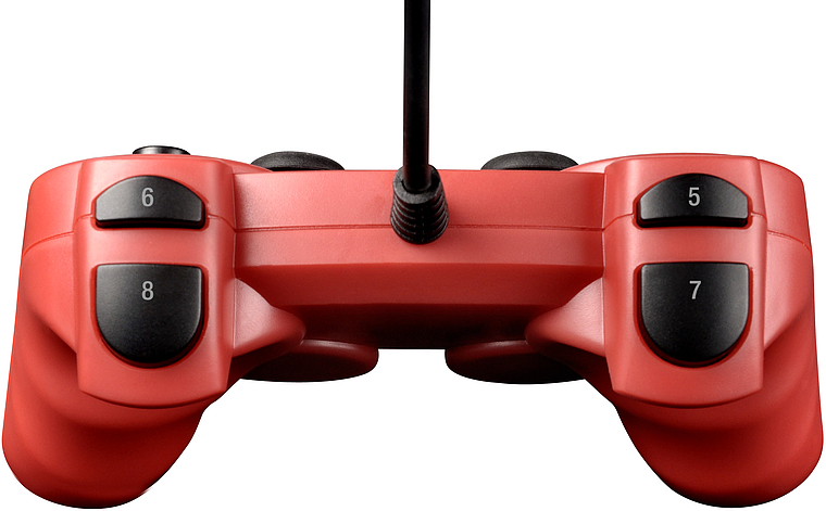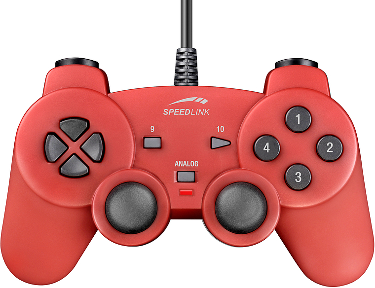 The ergonomically shaped Strike is the perfect gamepad for a realistic gaming experience. The adjustable force feedback function means you experience all the quakes and collisions in the game as if you were there – while always retaining full control thanks to the eight pressure-sensitive analogue buttons and the two analogue control sticks. If needed, you can also switch the gamepad to digital mode at the press of a button.