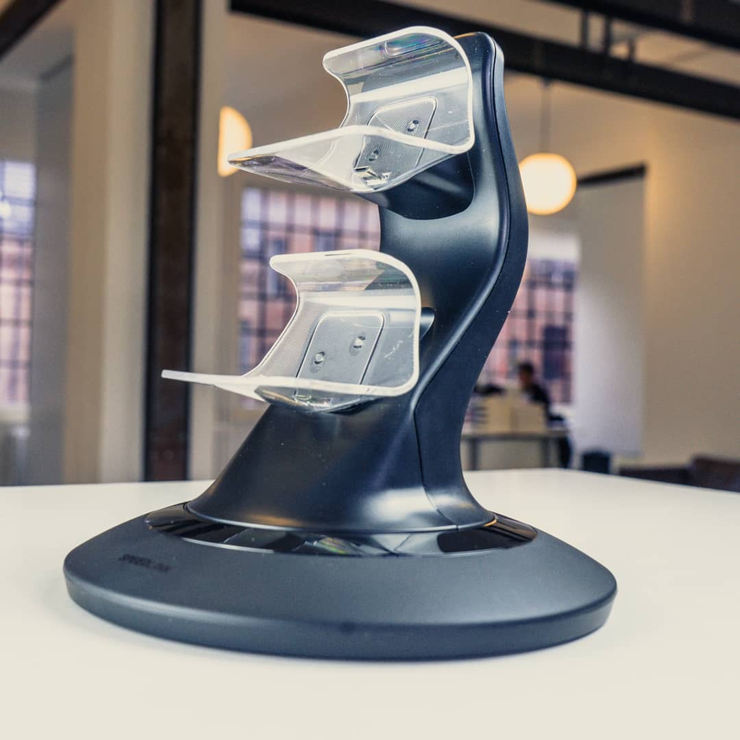 Charge your PS4® controllers quickly and reliably with the TWINDOCK charging system. Charge up to two controllers simultaneously and save the hassle of waiting. The proven, convenient docking system also holds your controllers securely in place – simply dock them and they'll start charging instantaneously. The rubberised feet prevent the charging system from sliding around, so it always stays rooted to the spot. What's more, besides the stylish design the TWINDOCK Charging System is highly durable as it’s designed for daily use. Thanks to its compact size and the practical arrangement of the charging slots, you can use the charging station wherever you want – plus, you'll always have your controllers ready to hand and neatly arranged.