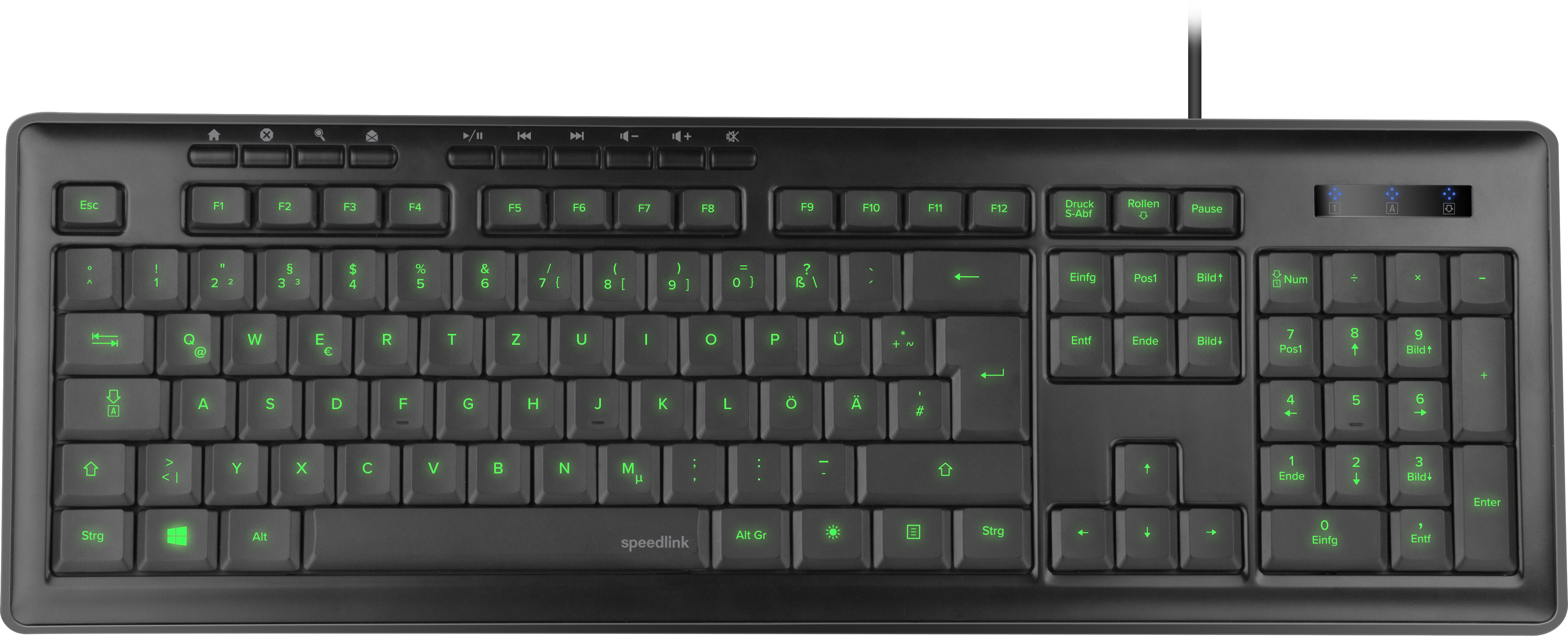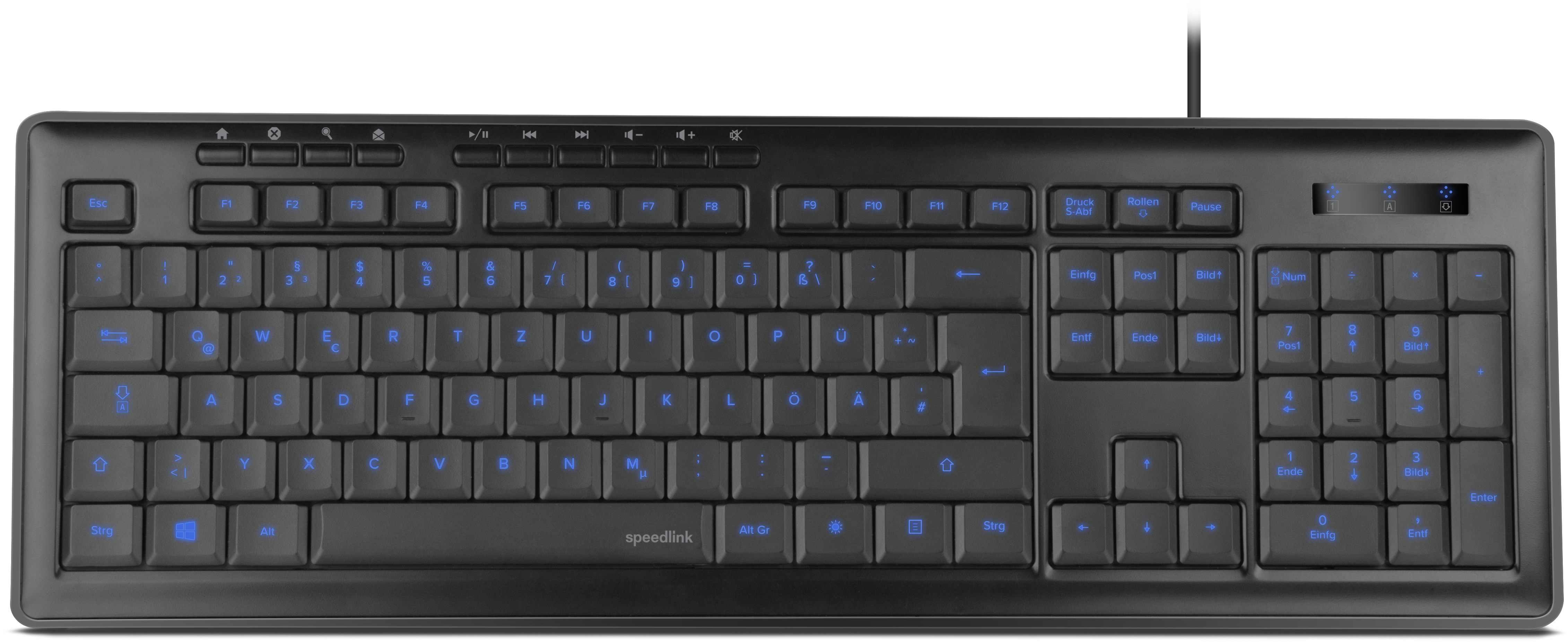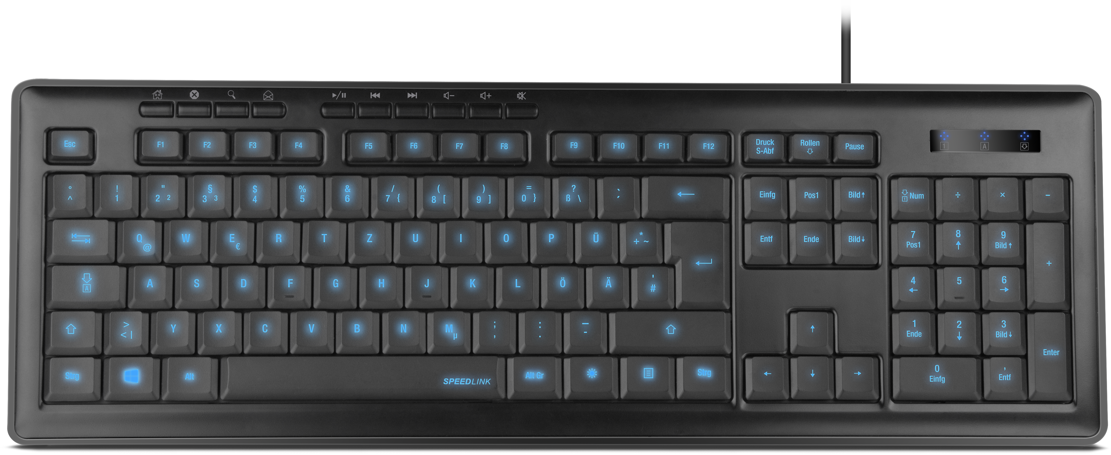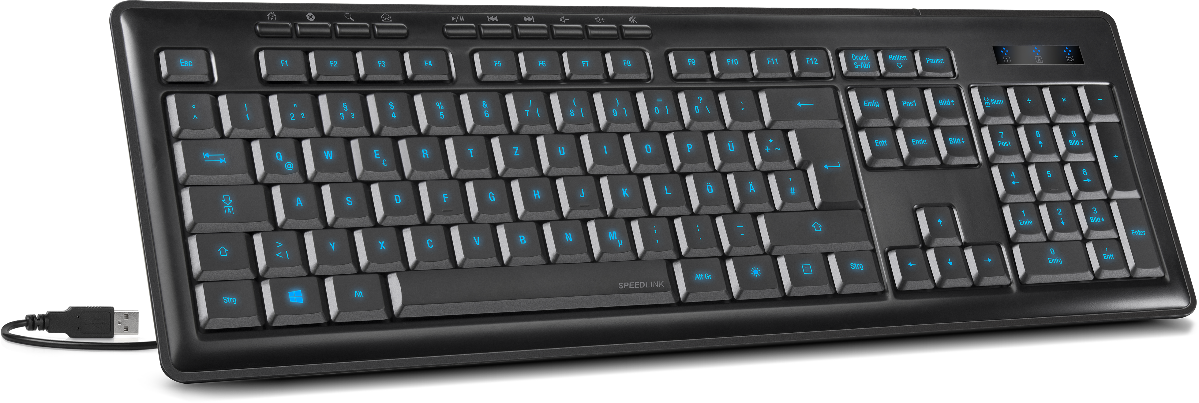 The flat, smooth-action keys on the VENDOM Illuminated Scissor Keyboard make even routine tasks nice and easy. This reliable scissor-key technology delivers maximum speed and precision. The keyboard also has ten hotkeys for direct access to multimedia and internet applications. And its really unique feature: customisable backlighting. Personalise your keyboard by making it glow cyan, blue or green. Now you'll be able to work or game on your computer even at night.