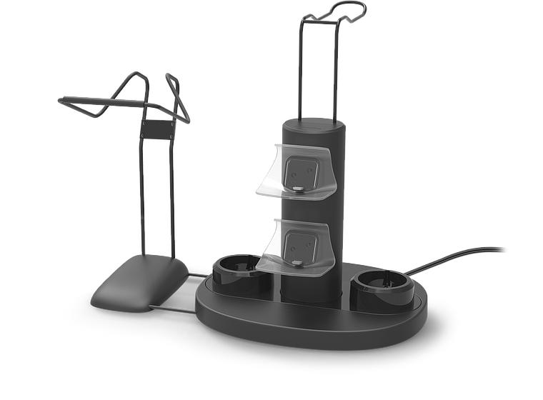 The VREADY 4-in-1 charging system is compact and will bring order to your gaming den. It accommodates two PS4® and two PS Move® controllers, plus it features two practical metal stands – one for a PS VR® headset and one for a headset/set of headphones. Its AC adapter frees you from the console for standalone charging, and if all your controllers suddenly run out of juice the VREADY will recharge them within just four hours.