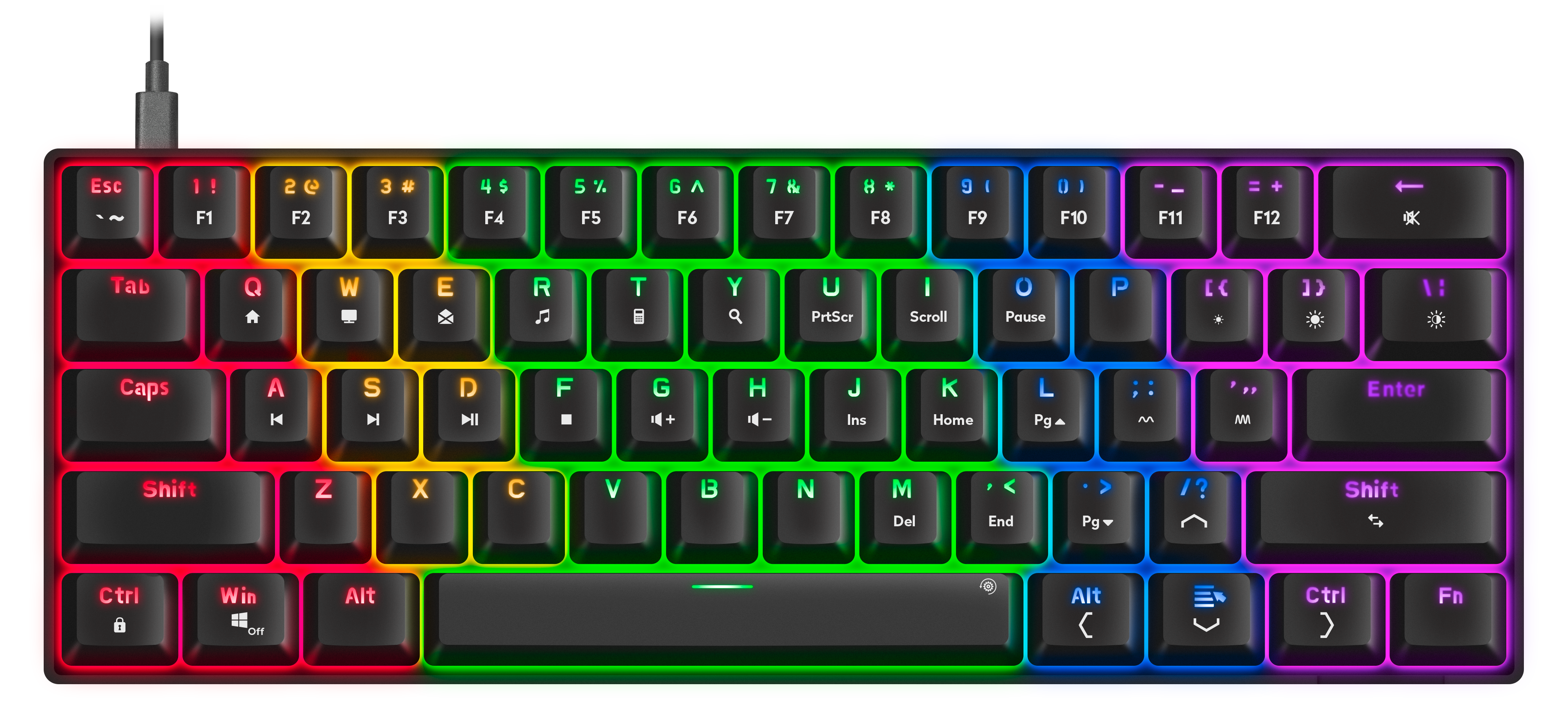 ATMOS RGB Rainbow Mechanical 60% Gaming Keyboard with brown switches, black - US layout
